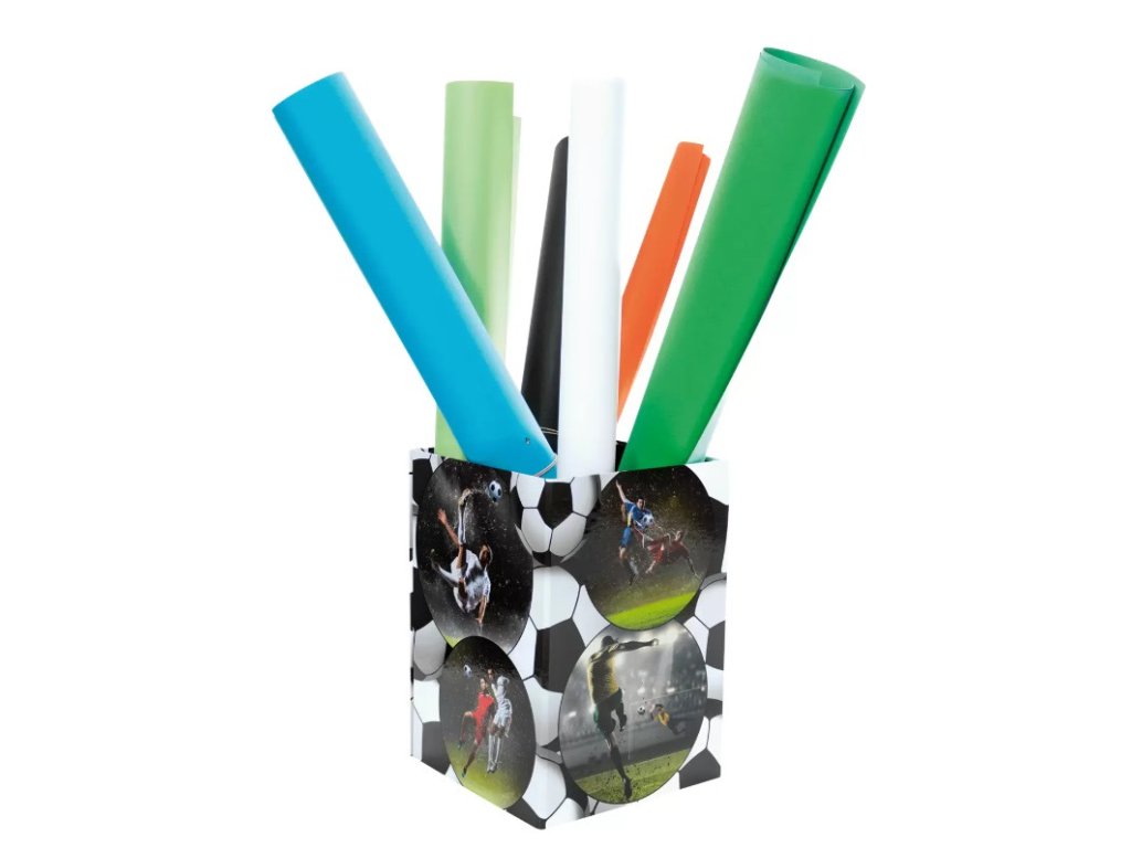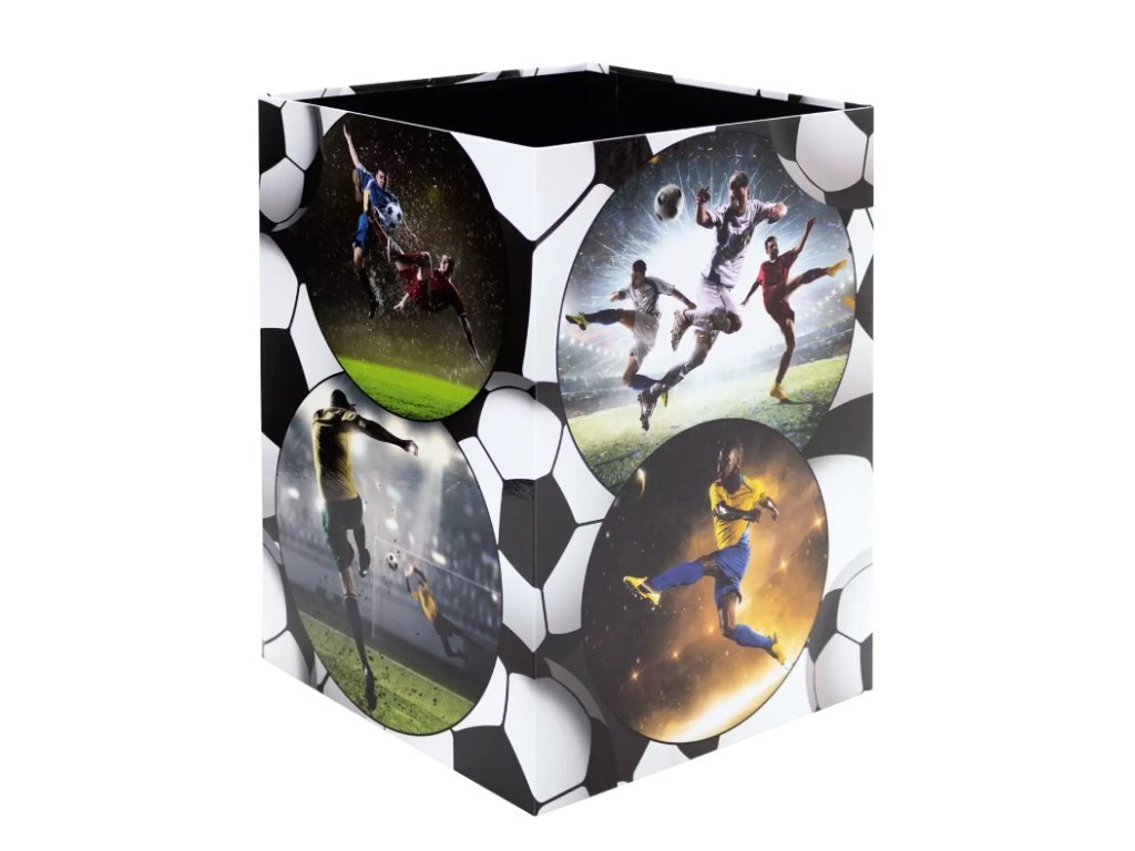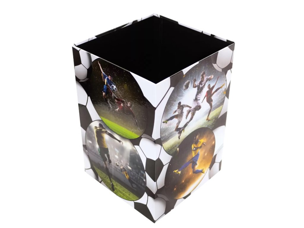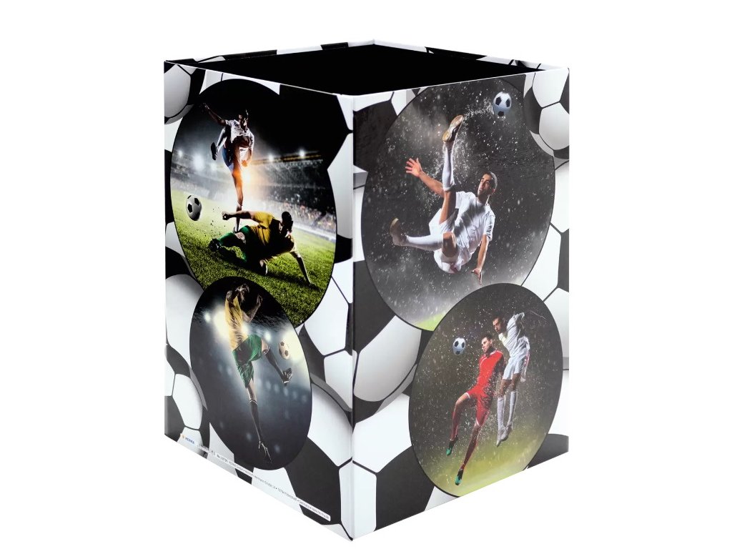 Popis Tento skvěle navržený odpadkový koš je hitem pro všechny fotbalové fanoušky! Praktický a krásný na pohled, skutečný poutač pod stolem. Odpadkový koš je vyroben ze silného kartonu a má objem 15 litrů, takže se vejde pod každý stůl. Potažený povrch umožňuje otírání a snadné čištění. Udržovat pořádek je snadné, a to i v dětském pokoji. S HERMA. Objevte produkty oblíbené fotbalové série: složky, desky s motivy, psací bloky, samolepky a další! Skvělý design, oblíbený u chlapců i dívek – hit v dětském pokoji.Doplňkové parametry
