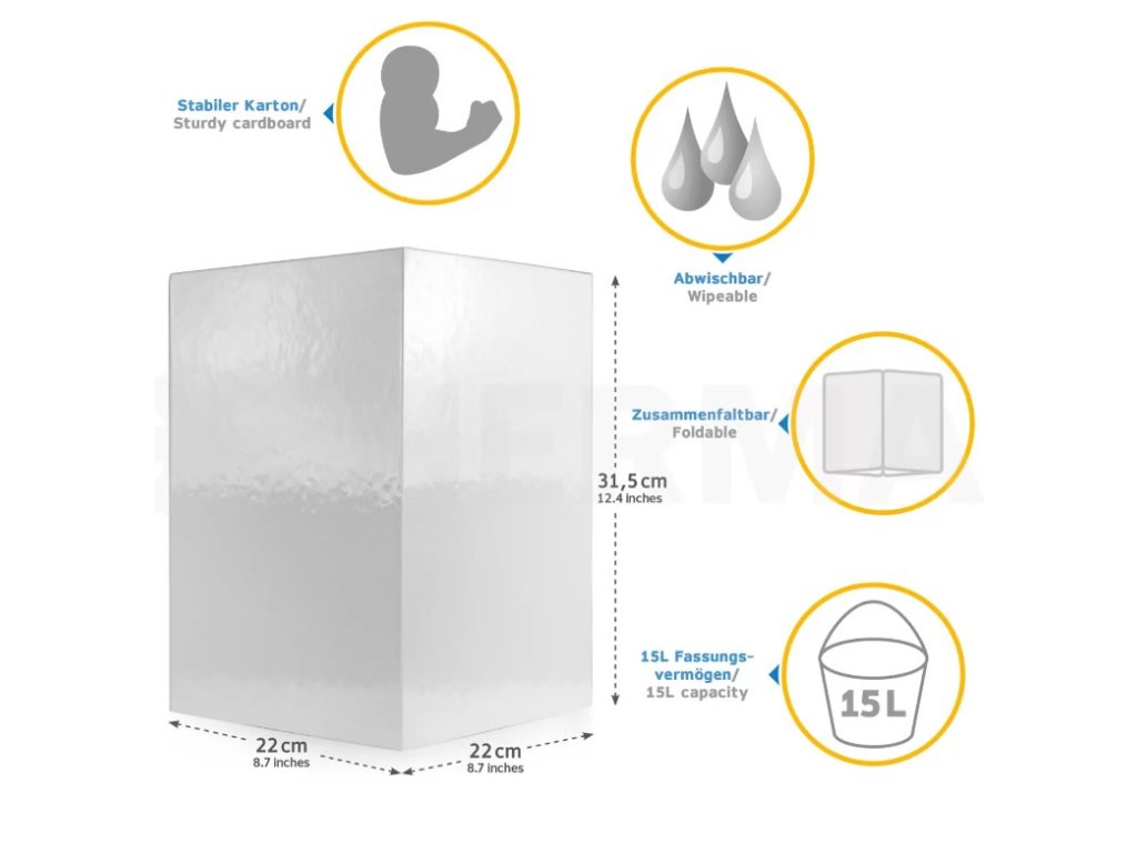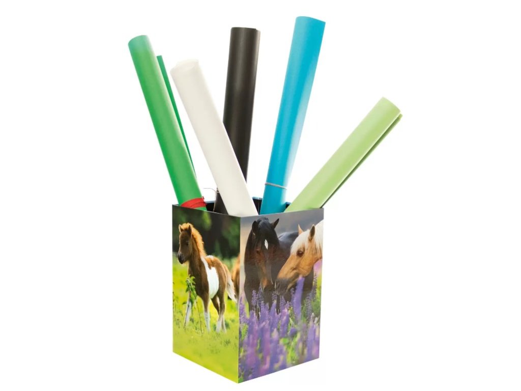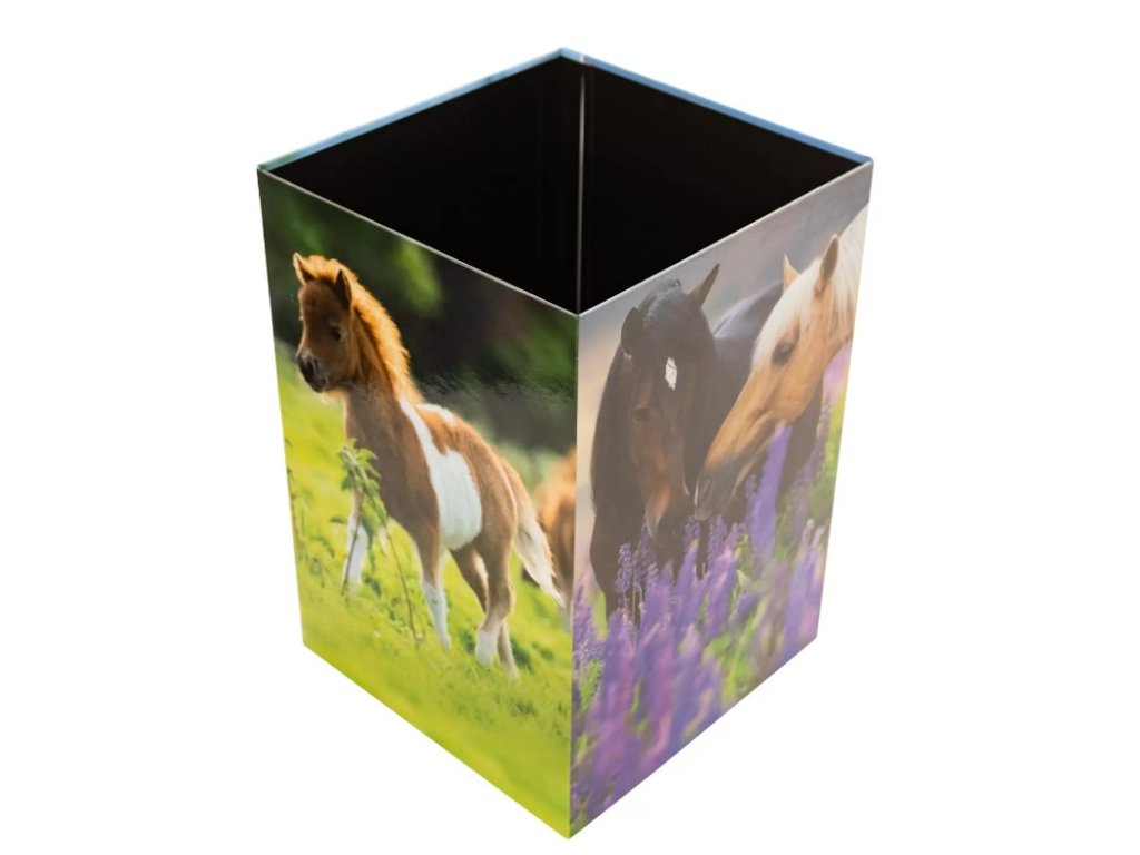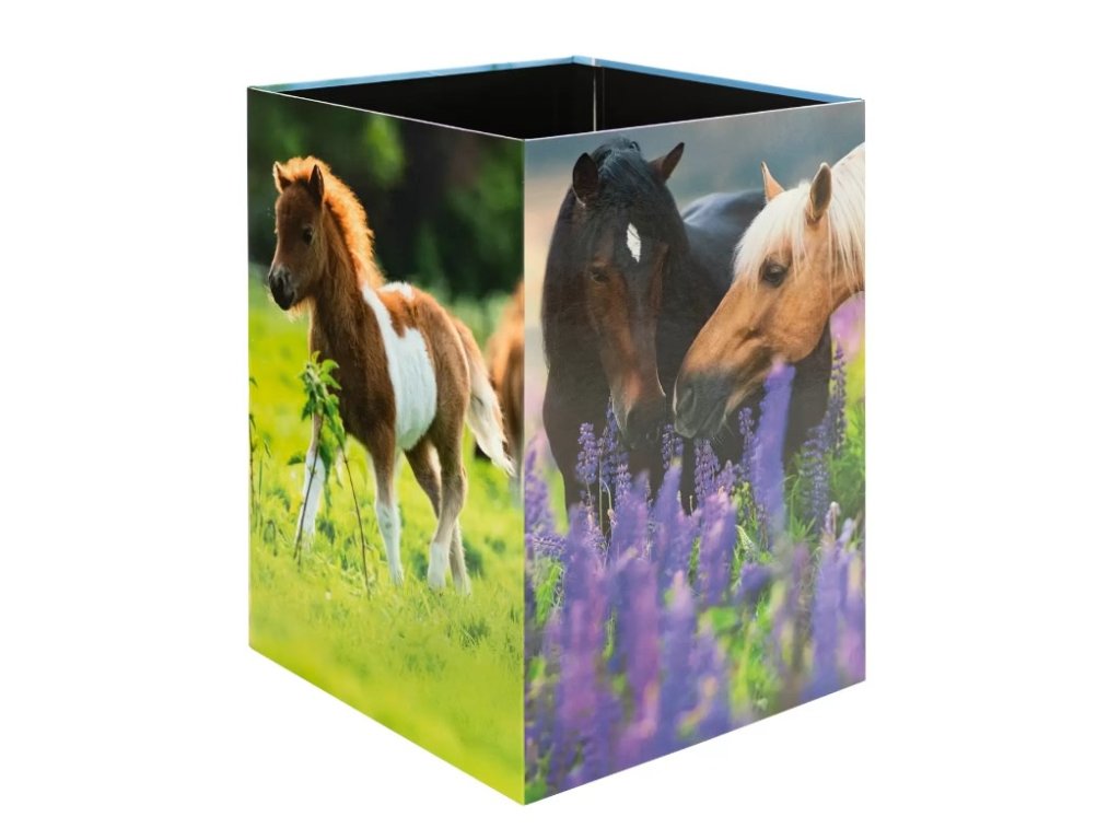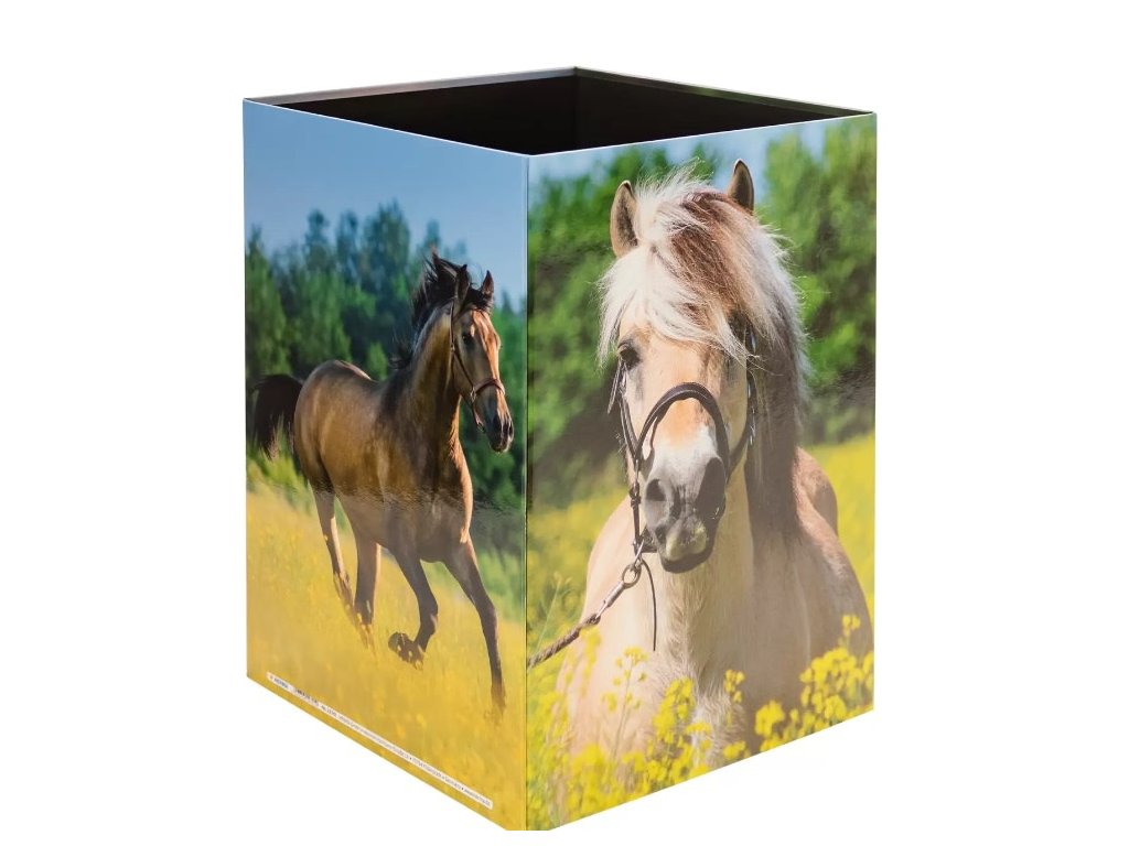 Popis Tento krásně navržený odpadkový koš je hitem u všech fanoušků koní! Praktický a krásný na pohled, skutečný poutač pod stolem. Koš na papír je vyroben ze silné lepenky a má objem 15 litrů, takže se vejde pod každý stůl. Potažený povrch umožňuje otírání a snadné čištění. Udržování pořádku je s HERMA snadné. Objevte produkty oblíbené řady pro koně: desky, desky s motivy, psací bloky, samolepky a další! Skvělý design, oblíbený u mladých i starých.Doplňkové parametry