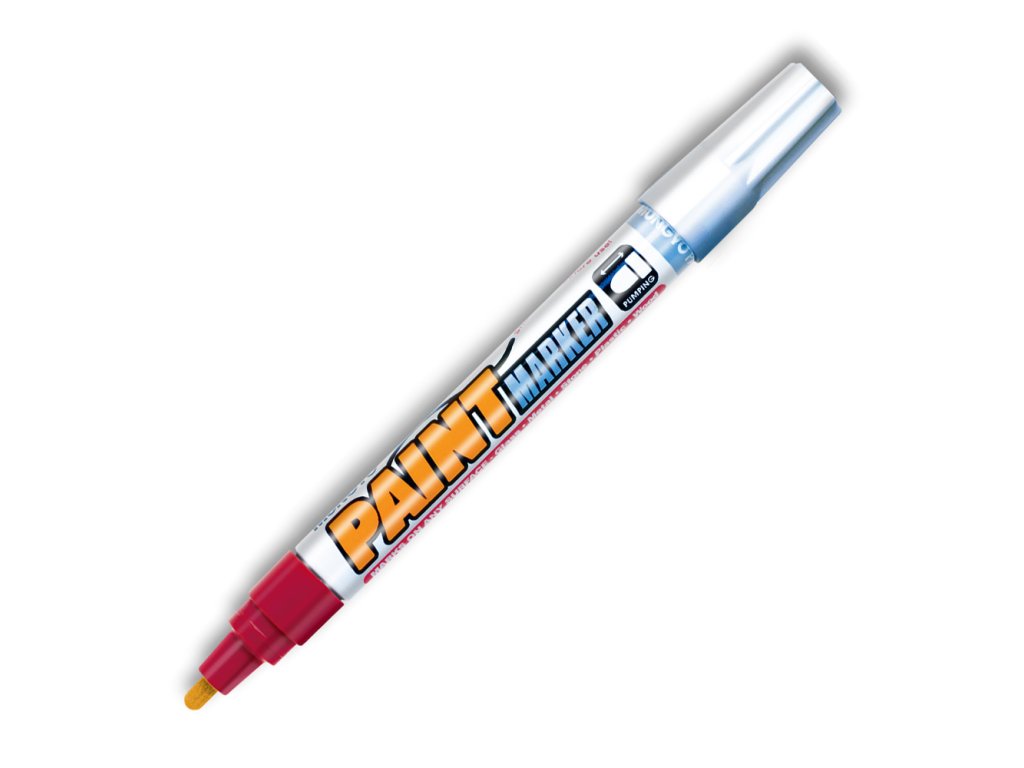 Olejový popisovač s kulatým psacím hrotem v hliníkovém těle.