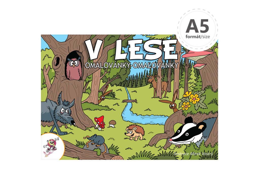 Detská omaľovanka V lese je vo formáte A5. Je z papiera podobnému v zošite, ale je hrubší, aby sa dobre vyfarbil. Je zostavená z krásnej farebnej predlohy a z totožnej perokresby.Doplňkové parametry