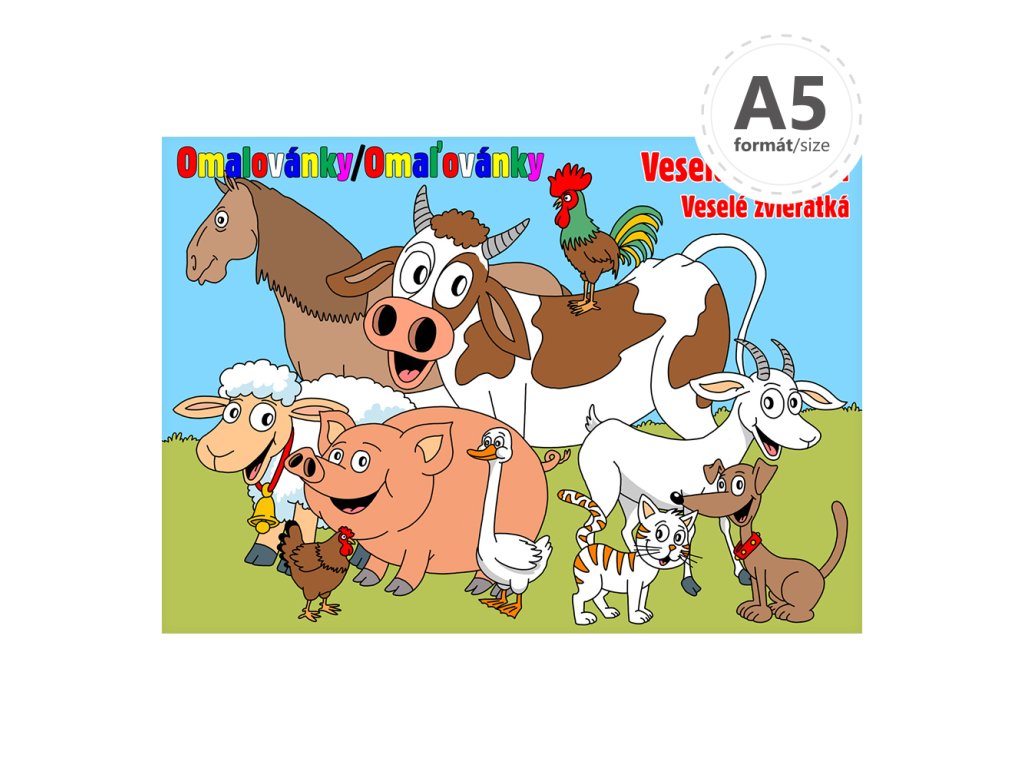 Detská omaľovanka Veselé zvieratká je vo formáte A5. Je z papiera podobnému v zošite, ale je hrubší, aby sa dobre vyfarbil. Je zostavená z krásnej farebnej predlohy a z totožnej perokresby.Doplňkové parametry