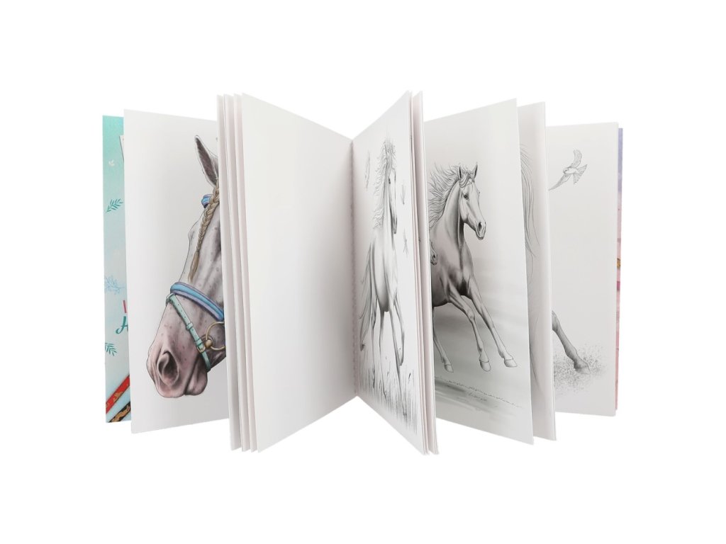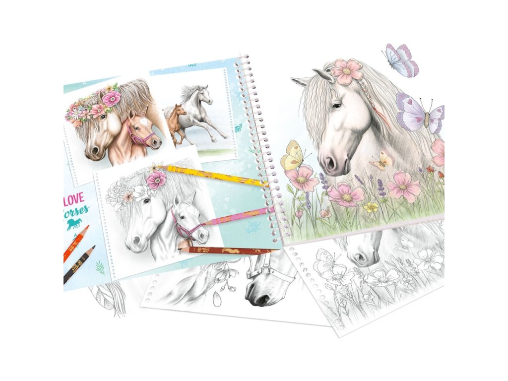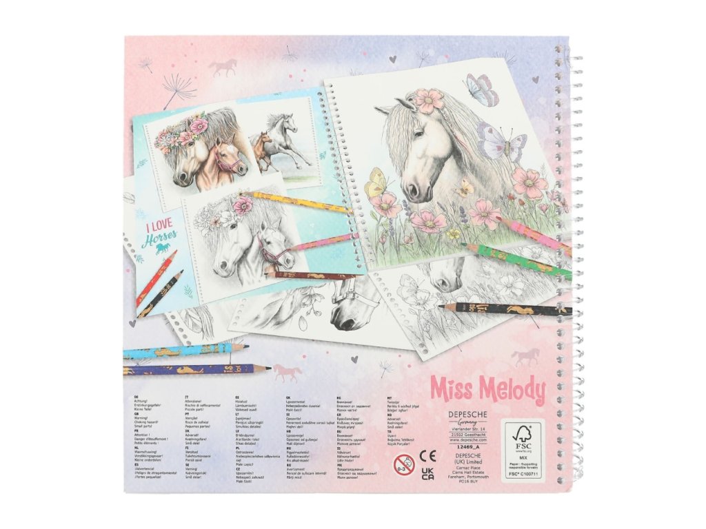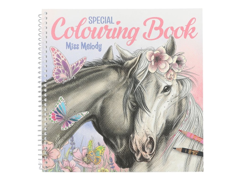 Omalovánka z mimořádně oblíbené značky Miss Melody s 20 překrásnými motivy koní na vybarvení tužkou, pastelkami nebo vodovými barvami.
