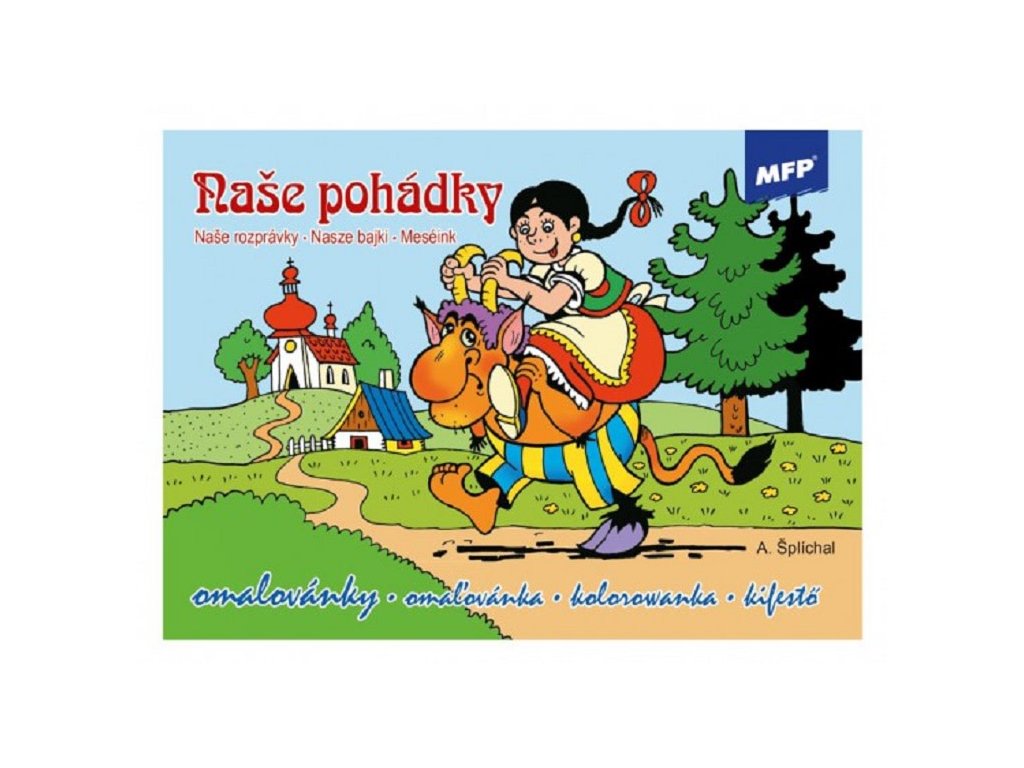 Dětské omalovánky Naše pohádky ve formátu A5. Udělejte si pohodové odpoledne s dětmi a vybarvěte si obrázek. Tyto omalovánky jsou jednoduché s velkými obrázky, tudíž vhodné i pro ty nejmenší děti. Vybarvování obrázků pomůže rozvíjet řadu schopností a dovedností, zejména má velký vliv na jemnou motoriku ruky. Počet předloh k vymalování: 8 (O Jeníčkovi a Mařence, Dlouhý, Široký a Bystrozraký, O řepě, Sněhurka a 7 trpaslíků, O Červené Karkulce, Kocour v botách).Vhodné pro děti od 3 let.Doplňkové parametry