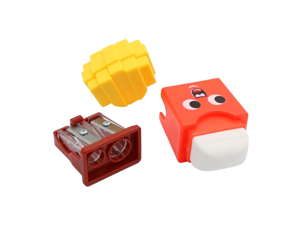 Struhadlo / ořezávátko na tužky a pastelky kombinované s gumou.