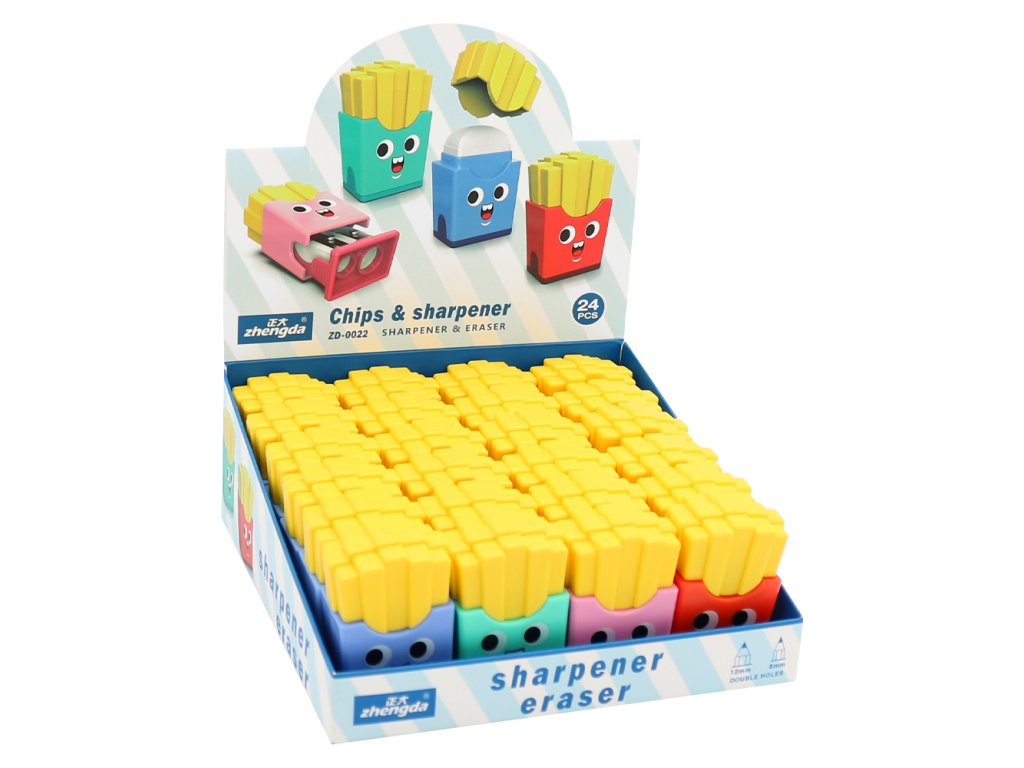 Ořezávátko Chipsy, 2 různé otvory + guma (mix barev)