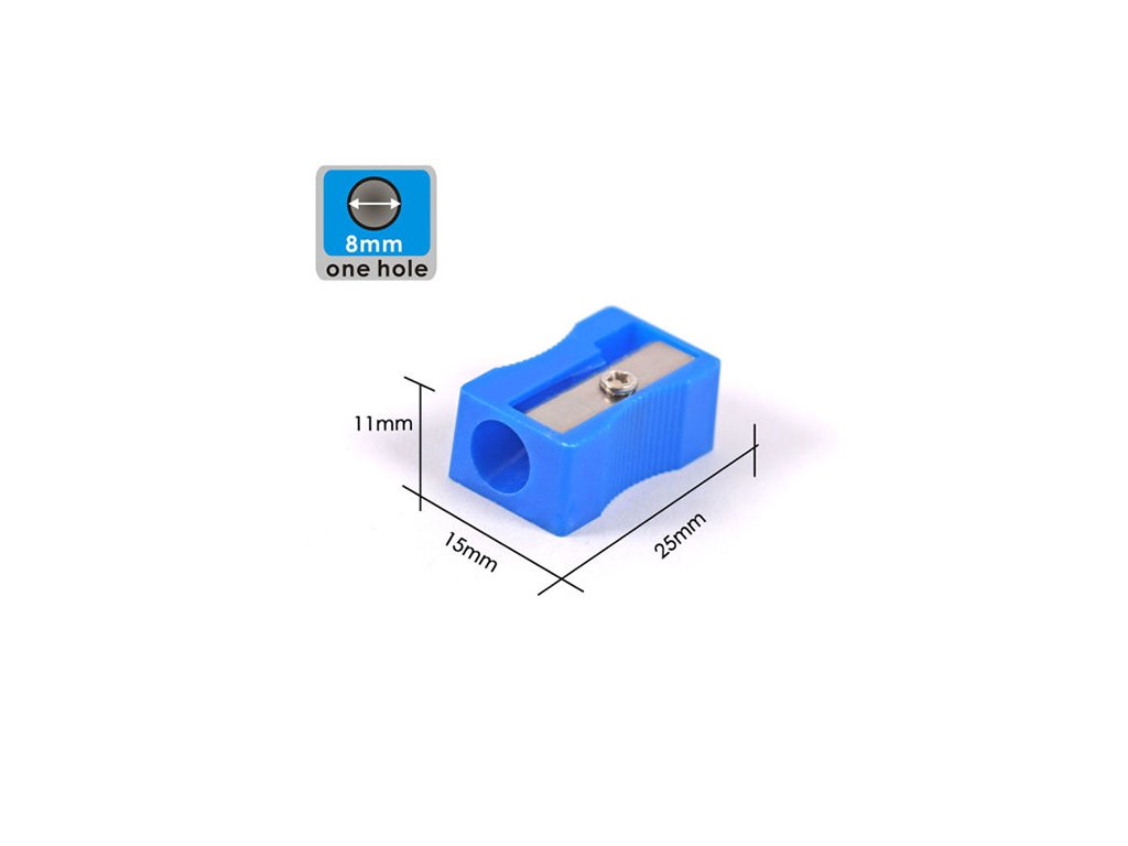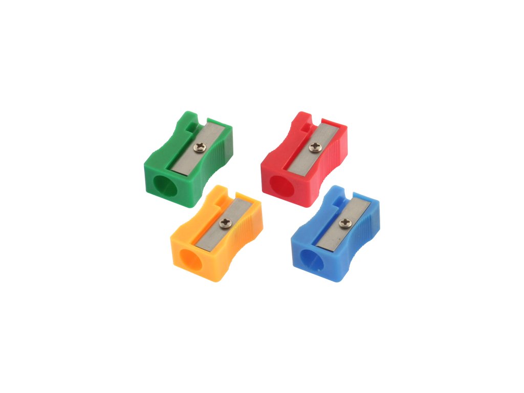 Jednoduché plastové ořezávátko vyrobené z PVC, obdelníkového tvaru, s ocelovou čepelí na klasické tužky. Dodávané v různých barvách.Doplňkové parametry
