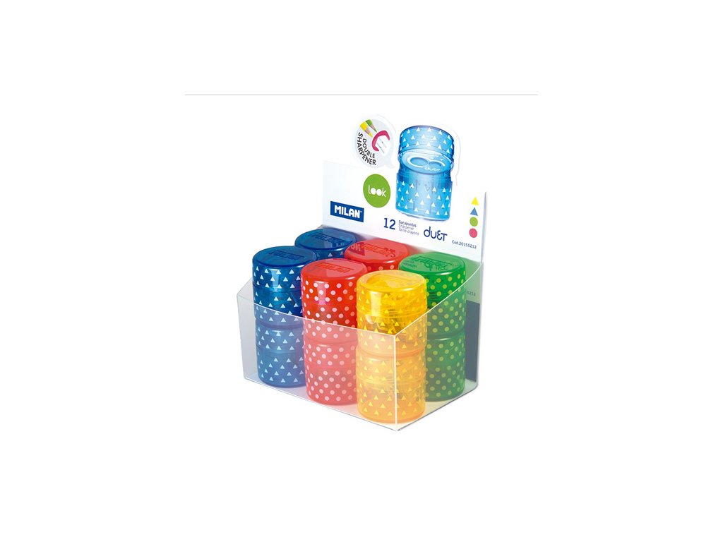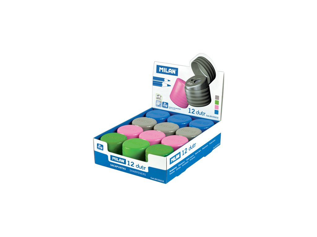 Ořezávátko MILAN Duet oboustranné, ideální pro klasické grafitové tužky a barevné pastelky. Ostrá, odolná uhlíková čepel. Vybaveno bezpečnostním systémem, který zabraňuje oddělení čepele od struhadla. Vhodné pro použití ve škole i kanceláři. Ve čtyřech baDoplňkové parametry