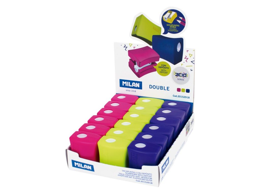 Ořezávátko plast. MILAN Double na dvě tužky se zásobníkem