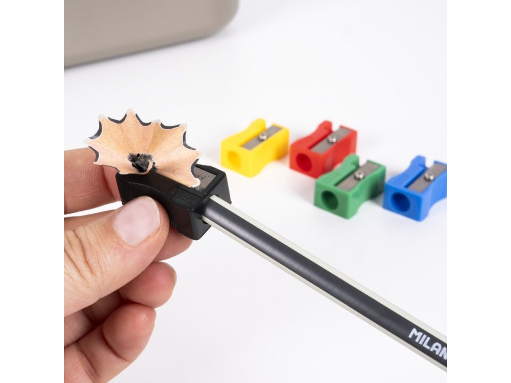 Jednoduché MILAN plastové ořezávátko v klasickém obdélníkovém tvaru. Vybaveno čepelí z uhlíkové oceli, ostré a odolné. Ideální pro grafitové tužky a barevné tužky. V nabídce v 5 barvách: zelená; modrá; žlutá; červená; černá.Doplňkové parametry