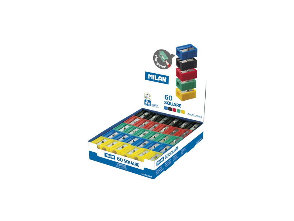 Jednoduché MILAN plastové ořezávátko v klasickém obdélníkovém tvaru. Vybaveno čepelí z uhlíkové oceli, ostré a odolné. Ideální pro grafitové tužky a barevné tužky. V nabídce v 5 barvách: zelená; modrá; žlutá; červená; černá.Doplňkové parametry