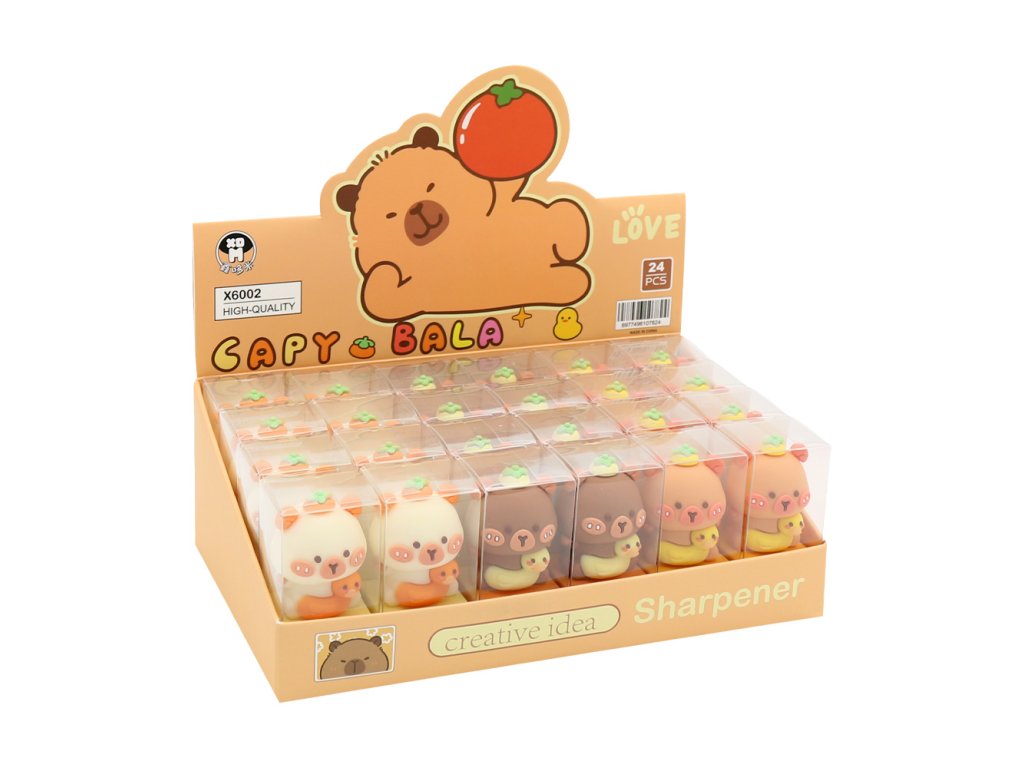 Gumené struhadlo / ořezávátko na tužky a pastelky stojící Capybary Love.