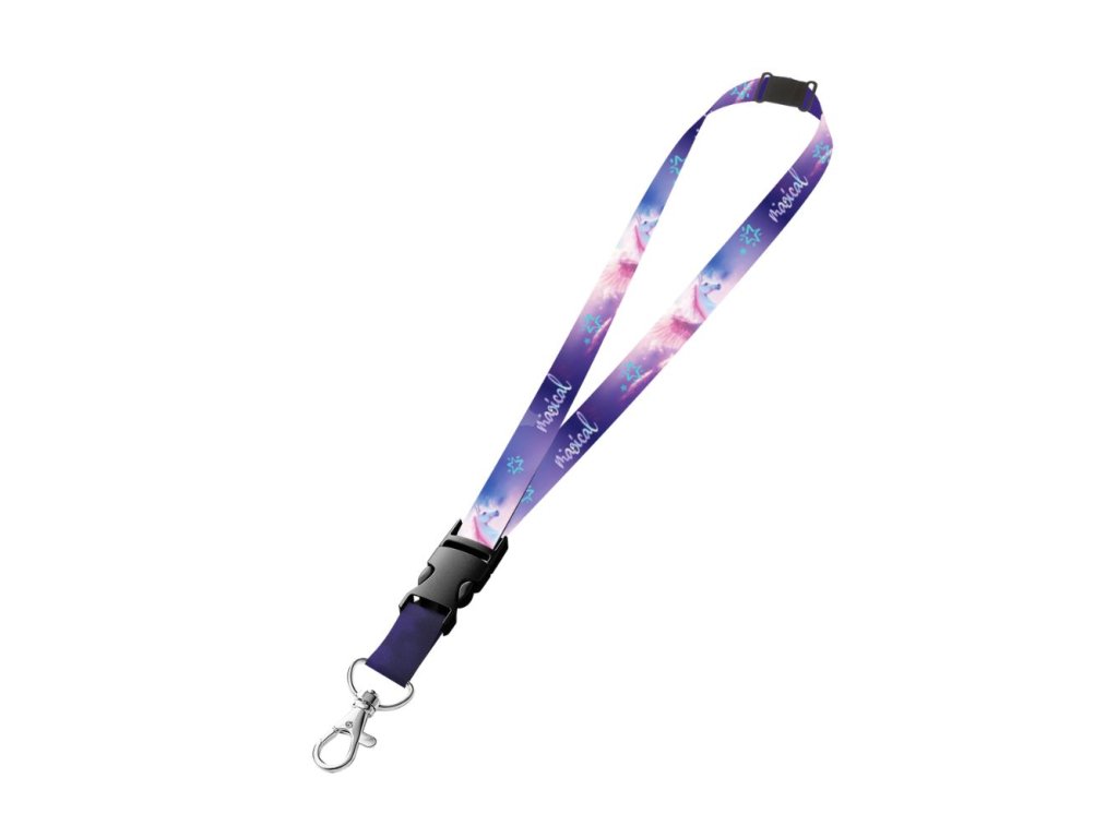 Dětská klíčenka na krk s veselým motivem, která potěší každého malého školáka. Je vybavena praktickou karabinou na zavěšení klíčů či průkazek a odepínací přezkou pro snadné použití.