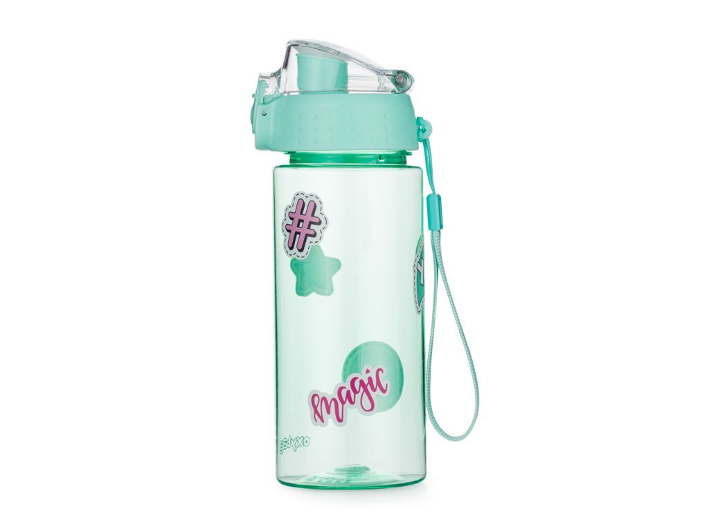 Dětská láhev na pití vyrobená z kvalitního a zdravotně nezávadného materiálu Tritan. Láhev je testována, neobsahuje BPA ani ftaláty. Vrchní část láhve je vybavena zámkem a otevíracím patentem, který funguje na principu změny polohy tlačítka (nahoru = zamčeno, dolů = otevřeno). Díky tomu je láhev snadno otevíratelná a zároveň chráněná proti nechtěnému vylití. Láhev má objem 500 ml, je vhodná do myčky na maximální teplotu 80 °C a je ideální pro děti od 5 let. Praktická šňůrka usnadňuje manipulaci a průměr pítka je 2,5 cm. Upozornění: Láhev není určena pro sycené nápoje.