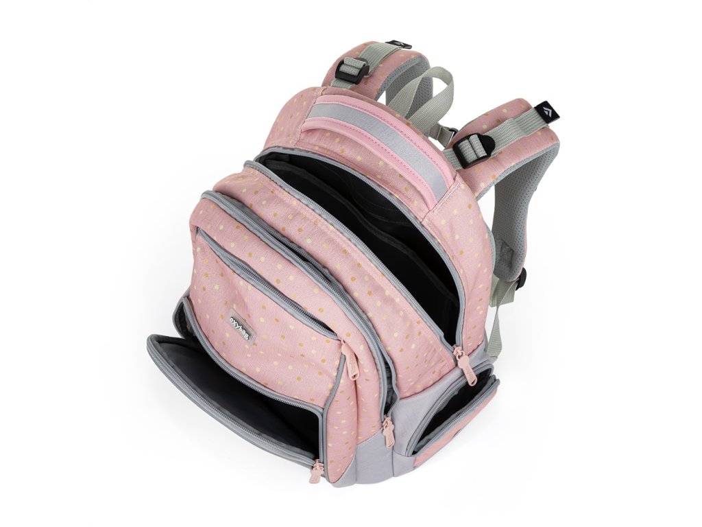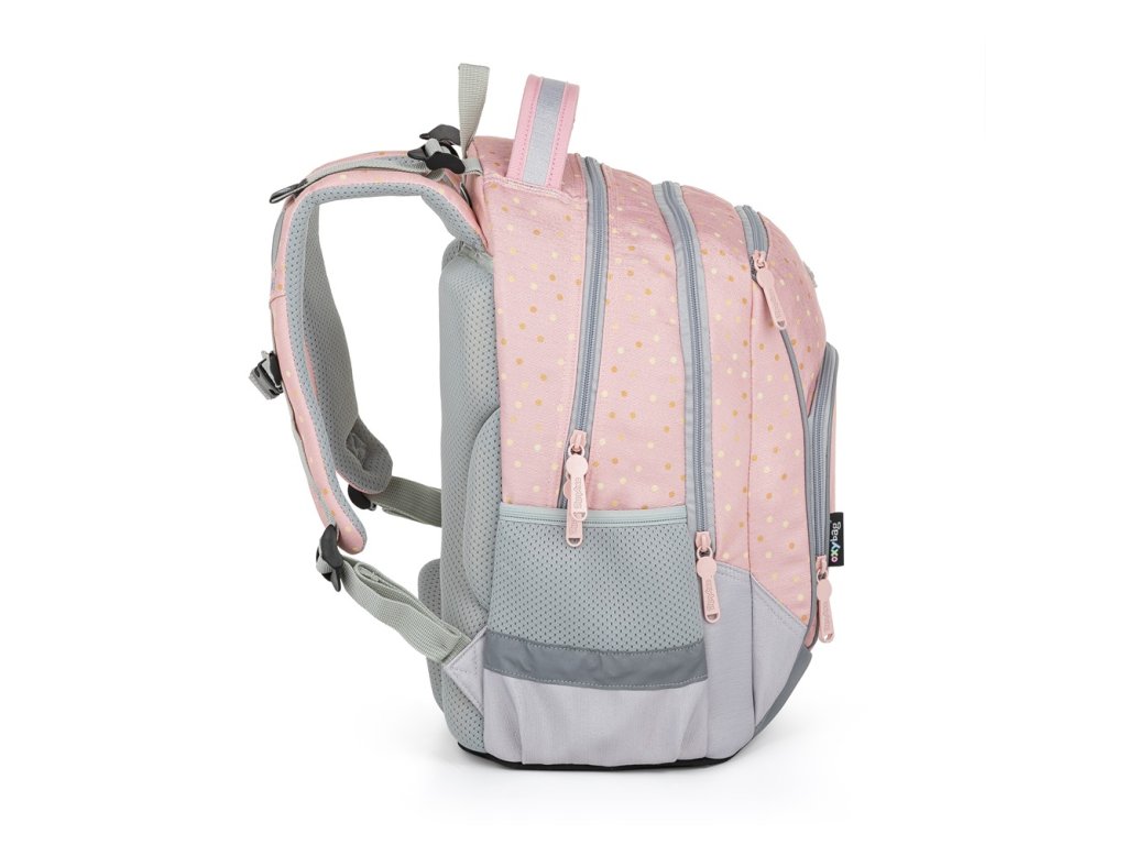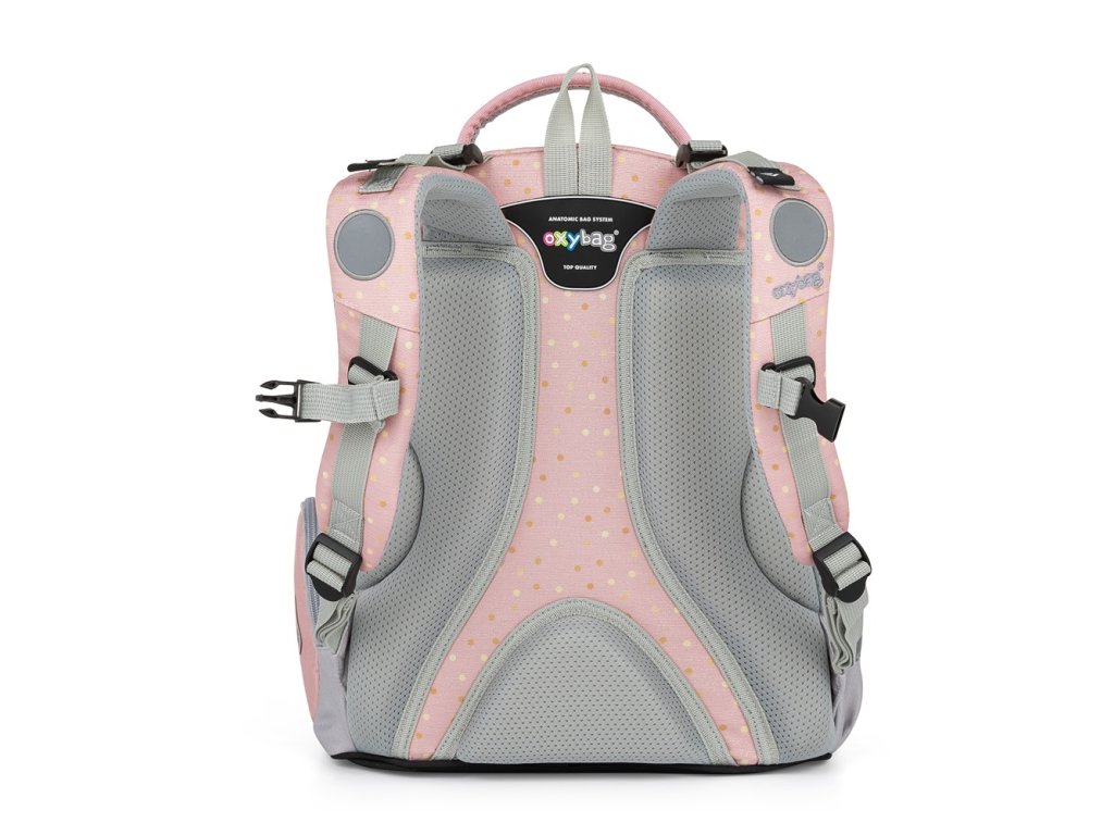 Školní batoh z řady OXY GO na sebe jednoduše strhne pozornost. Designové provedení zaujme každého kluka i holku. Perfektní tvar batohu ukrývá nejen anatomicky tvarovaná a prodyšná záda, ale také možnost nastavit si ramenní popruhy pro lepší pohodlí a komfortnější nošení. Dvě vnitřní kapsy nabízí dostatek prostoru pro učebnice, sešity i věci na volný čas. Pevné dno zabraňuje jak ušpinění zvenku, tak protečení čehokoliv, co se vylije uvnitř. Po stranách najdete dvě větší kapsy. Batoh nabízí velkorysé množství nejrůznějších kapes, ať už velkých nebo i malých. Hledání klíčů v batohu proto nehrozí. Lehký, přitom dostatečně velký pro všechny věci, které chce mít každý školák po ruce. Mysleli jsme také na bezpečnost vašich dětí, proto batohu nechybějí reflexní prvky. Batoh je ideální na první stupeň 1. - 3. třídu pro děti vysoké od 125 cm.