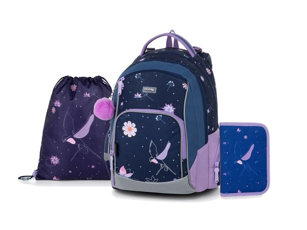 Oxybag 3dílný školní set OXY GO Květiny (0-22924) klade důraz na kompletní vybavení pro školáky, ergonomii pro zdravá záda, moderní a elegantní květinový design a výhodnou sadu potřebných doplňků, což osloví rodiče i děti a zaujme ve vyhledávačích a na sociálních sítích.