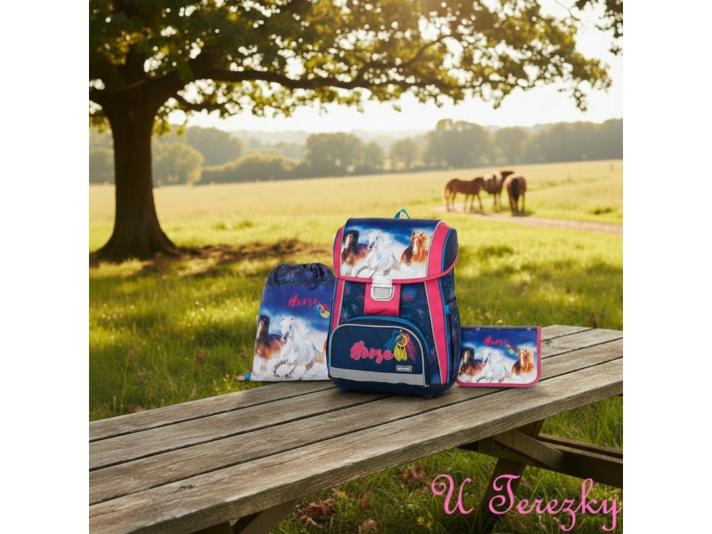 Tento set promění každou cestu do školy v zážitek. Realistický motiv koně na všech třech částech je precizně zpracovaný a zaručeně vyvolá nadšení u každé milovnice zvířat. Vše je dokonale barevně sladěno.