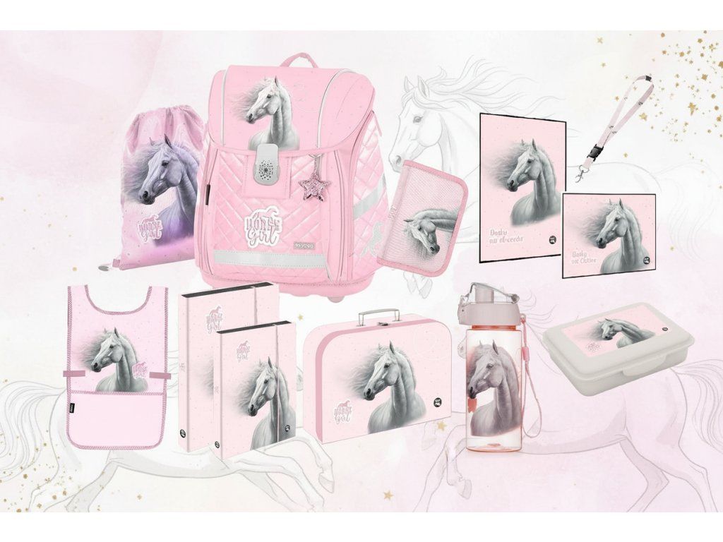 - Vše v jednom stylu: Od velkého batohu až po poslední klíčenku – vše dokonale ladí v designu "Horse Girl". 🐎