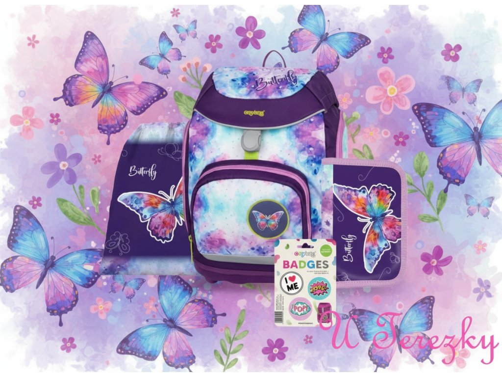 Oxybag Školní sada set 4dílný OXY Sherpy Motýl batoh, penál, sáček, dekorační placky 0-24726/01