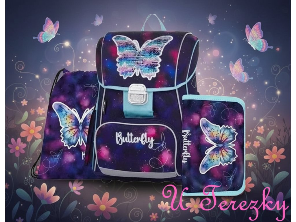 Oxybag Školní sada set Premium Motýl 3 ks Školní batoh , penál, sáček 3-70625/03