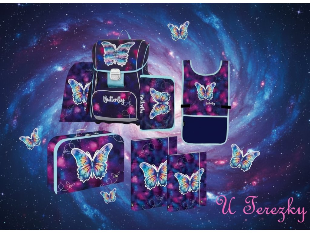 Oxybag Školní sada set Premium Motýl 7 ks Školní batoh , penál, sáček a doplňky 3-70625/07