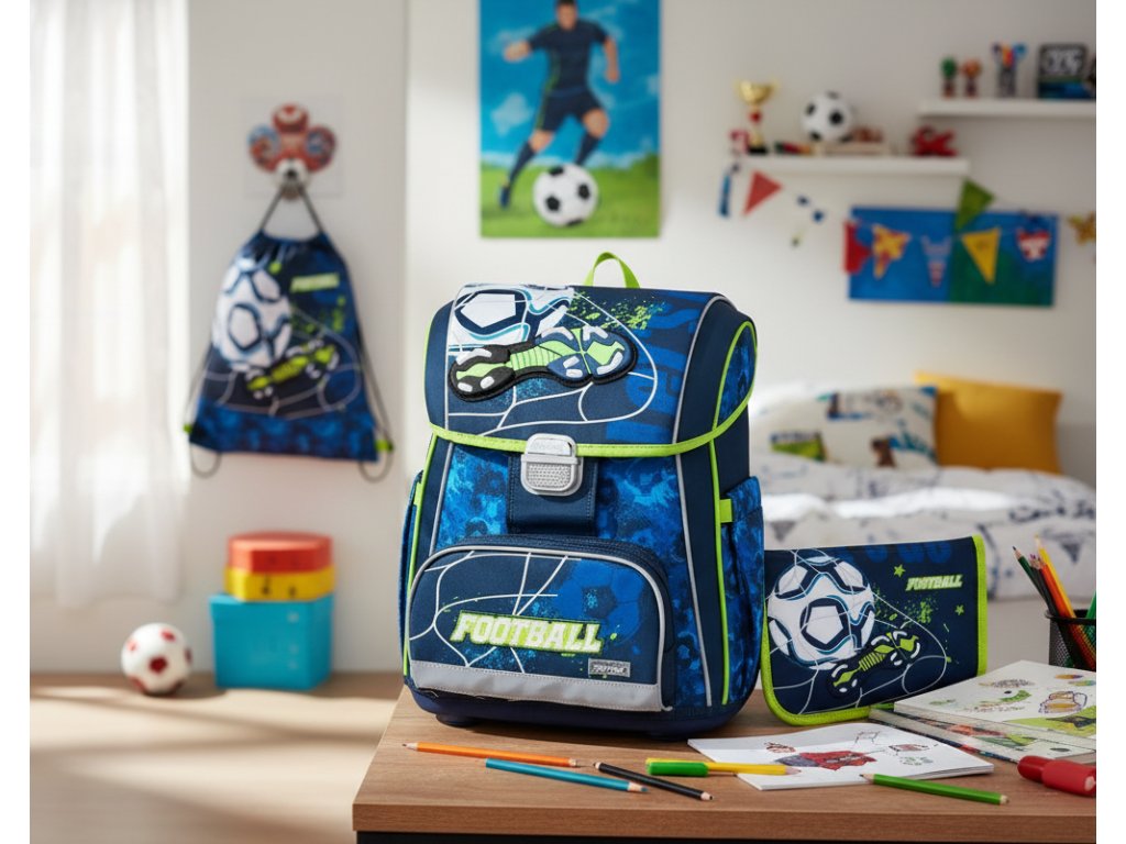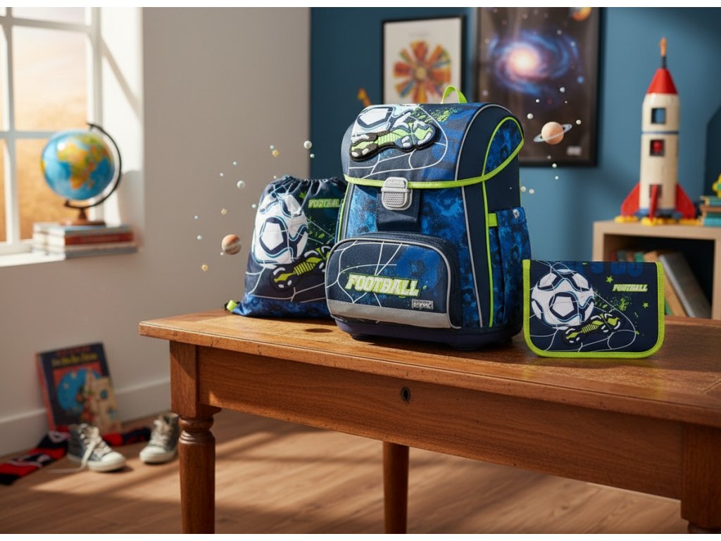 Školním setem 3ks PREMIUM fotbal s kopačkou (kód 0-21124). Tento set je navržen tak, aby zvládl každodenní nasazení v 1. i 2. třídě a proměnil cestu do lavic ve vítězné tažení.