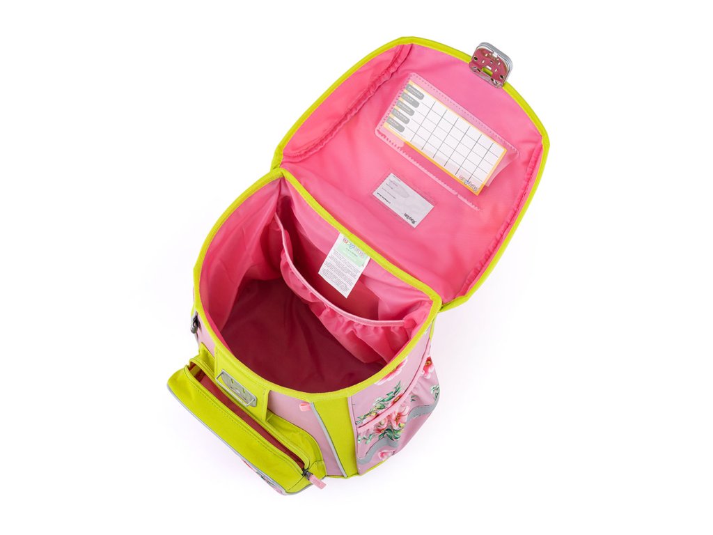 Aktovka: Školní aktovka z řady Premium je anatomicky tvarovaná a zajišťuje tak správné usazení na zádech. Vyztužená záda a vnitřní výztuha udržují stálý tvar batohu. Polstrování je z příjemného prodyšného materiálu, široké měkčené popruhy jsou navrženy tak, aby dokonale přilnuly a rovnoměrně zatížily ramena dítěte. Aktovka se skládá z jedné prostorné komory, kam se pohodlně vejdou všechny školní pomůcky pro děti v 1. a ve 2. třídě. Dno batohu je z pevného materiálu, chrání tím obsah před převržením a vysypáním. Zapínání je na bezpečnostní přezku. Přední kapsička je určena na svačinu, nechybí řada reflexních prvků, díky kterým je aktovka viditelnější. Objem: 28 l. Nosnost: 8 kg.