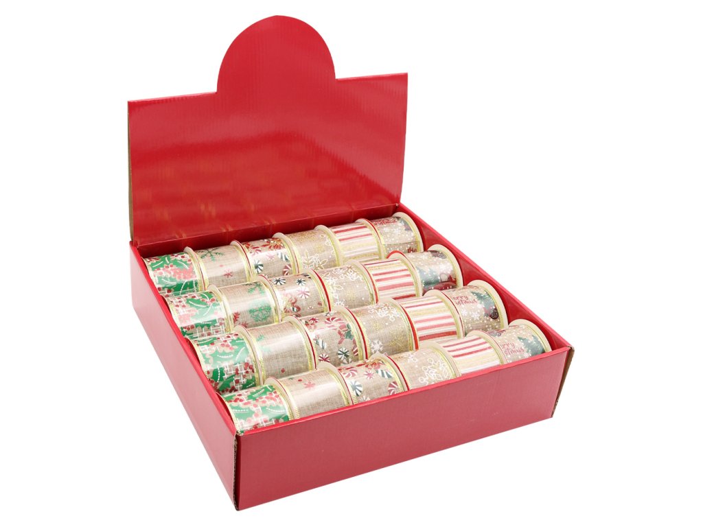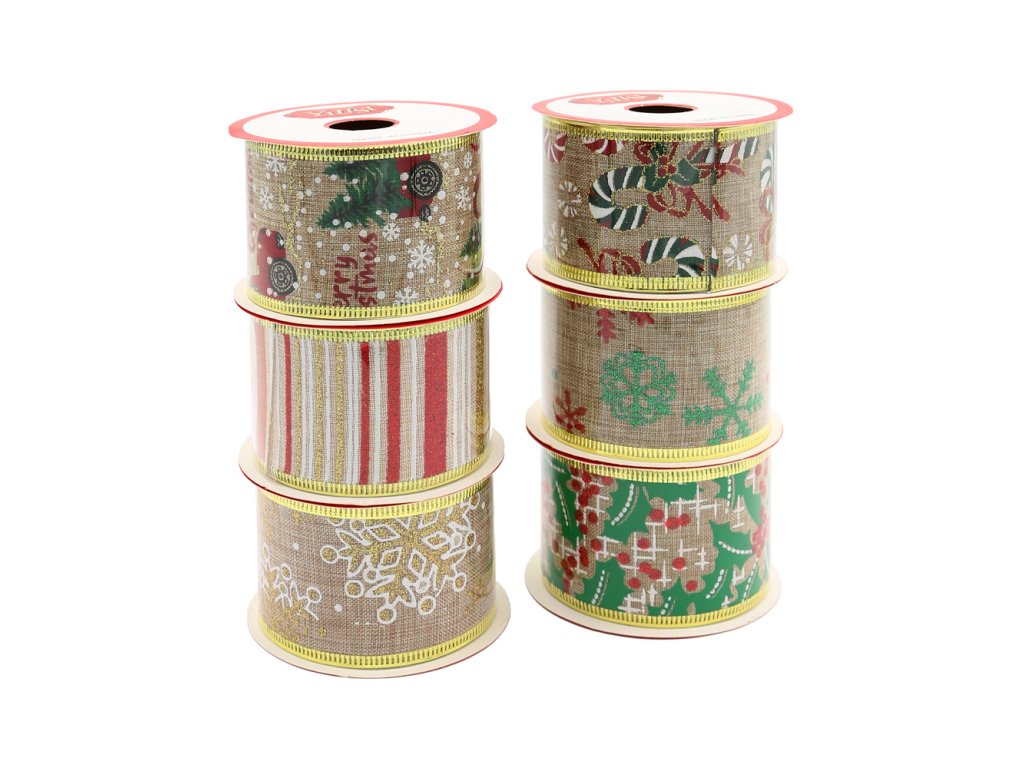 Dekorační stuha se třpytivým potiskem (6 vánočních designů).