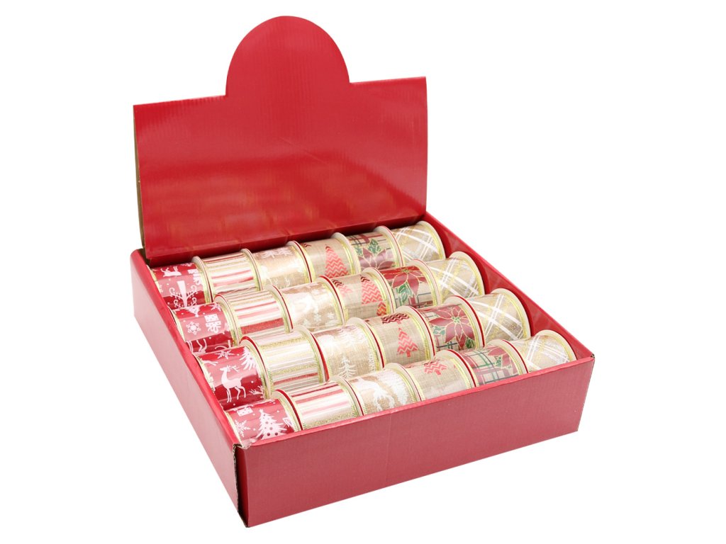 Dekorační stuha s lemováním ve zlaté, lesklé barvě (mix 6 vánočních designů).