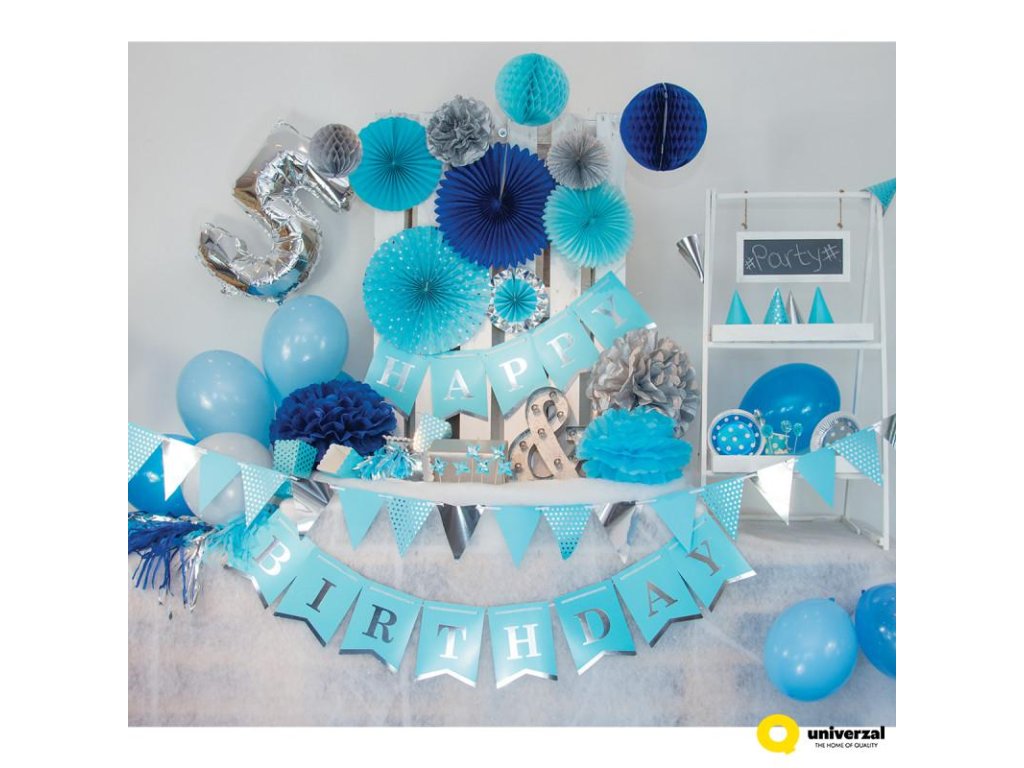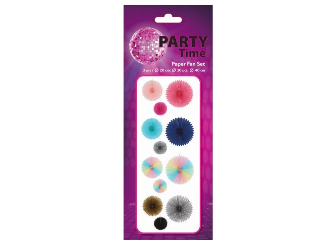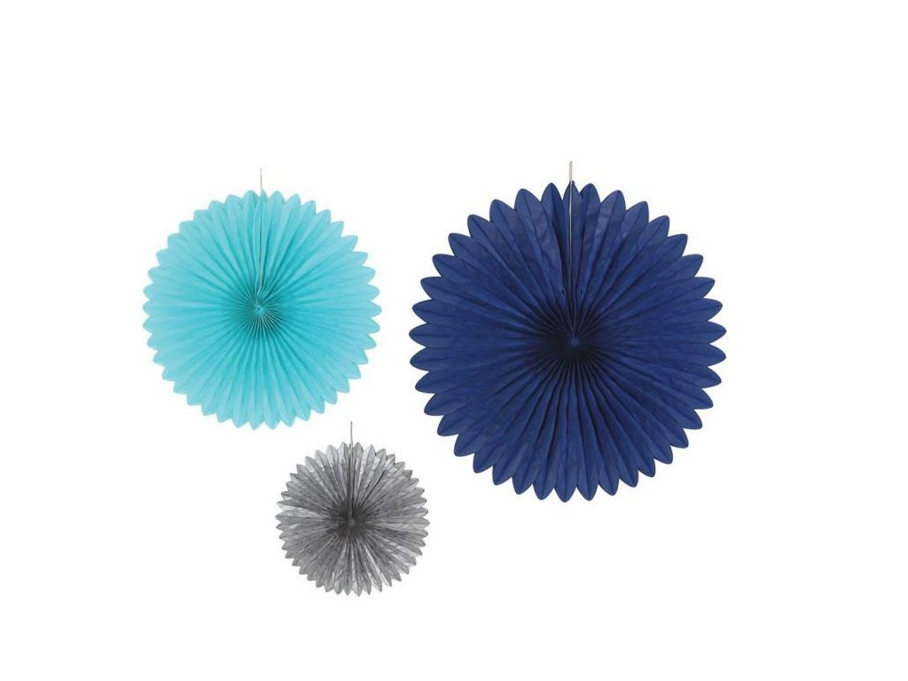 Sada 3 ozdobných vějířů 3 velikosti - 20cm, 30cm a 40 cm Kombinace modrých barev Krásná dekorace pro každou pořádnou pártyDoplňkové parametry