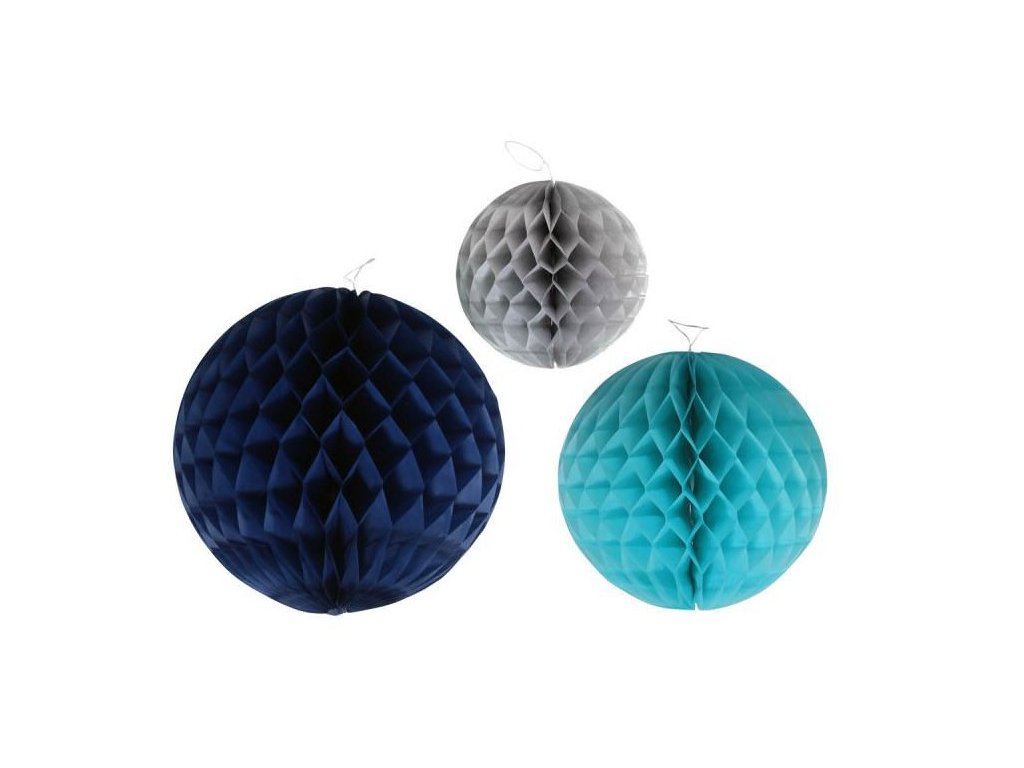 Ozdobné papírové koule, modré, sada 3 ks
