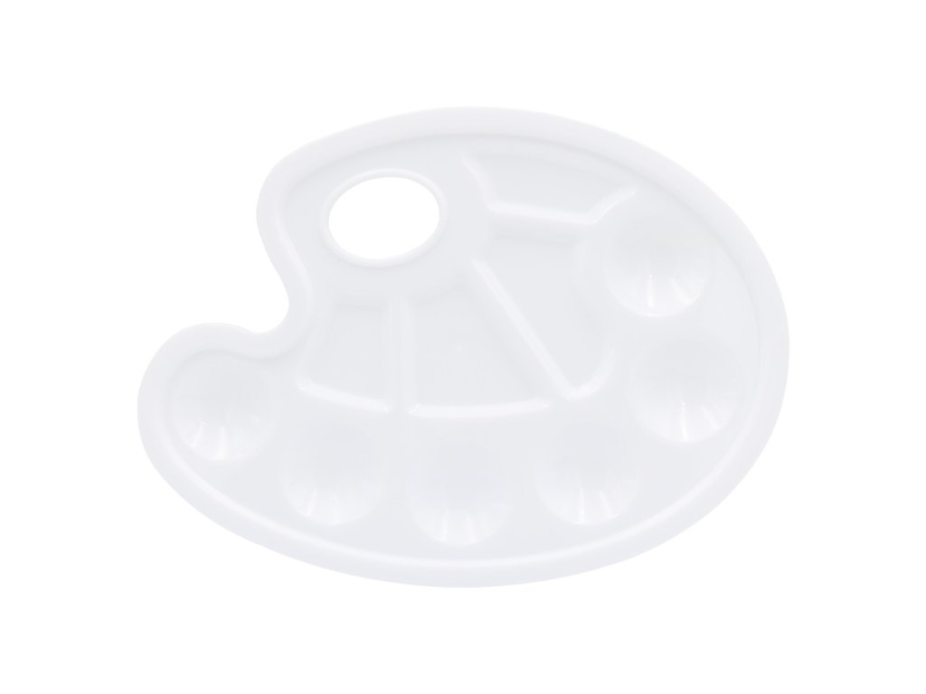 Praktická malířská paleta na zamíchání barev je vyhotovena z bílého plastu, což umožňuje její snadné vymývání a údržbu. Díky lehkému materiálu se hodí zejména na výtvarné aktivity školáků.Doplňkové parametry