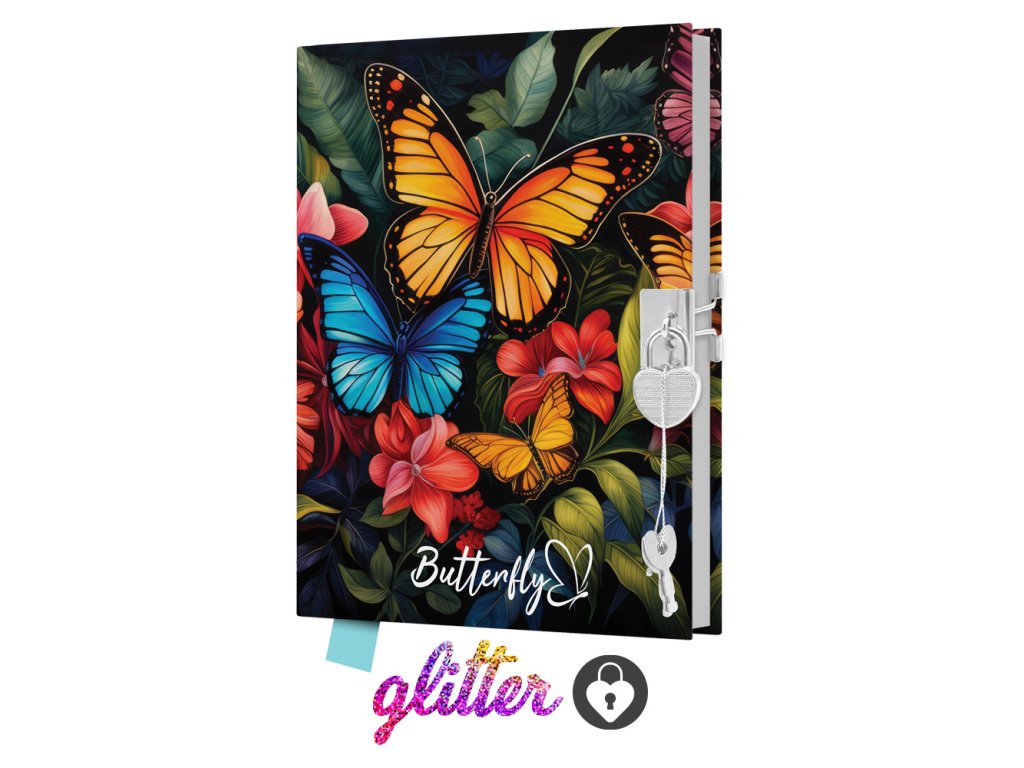 Památník JUNIOR 14x18 cm, 80 listů, se zámkem - Butterfly