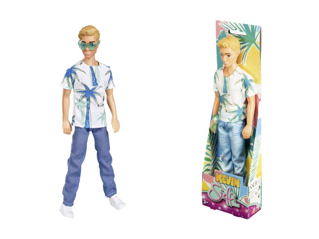 Panáček Kevin v prázdninovém outfitu. Oblečený v tričku s palmou a cool džínách se slunečními brýlemi. Velikost panáčka 30 cm.Doplňkové parametry
