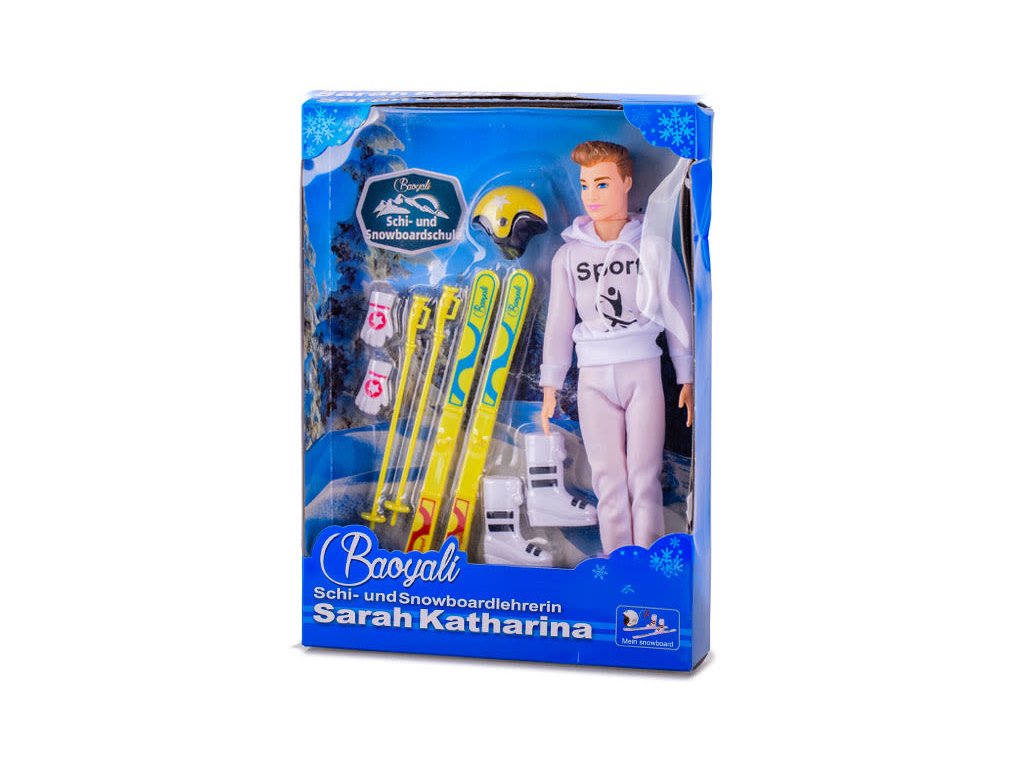 Panáček lyžař 29cm s doplňky, v krabičce