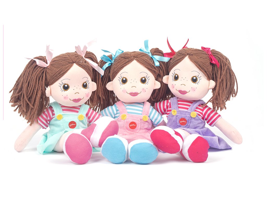 Látková panenka, která umí říkat básničky a zpívat písničky. Velikost 35 cm.Doplňkové parametry