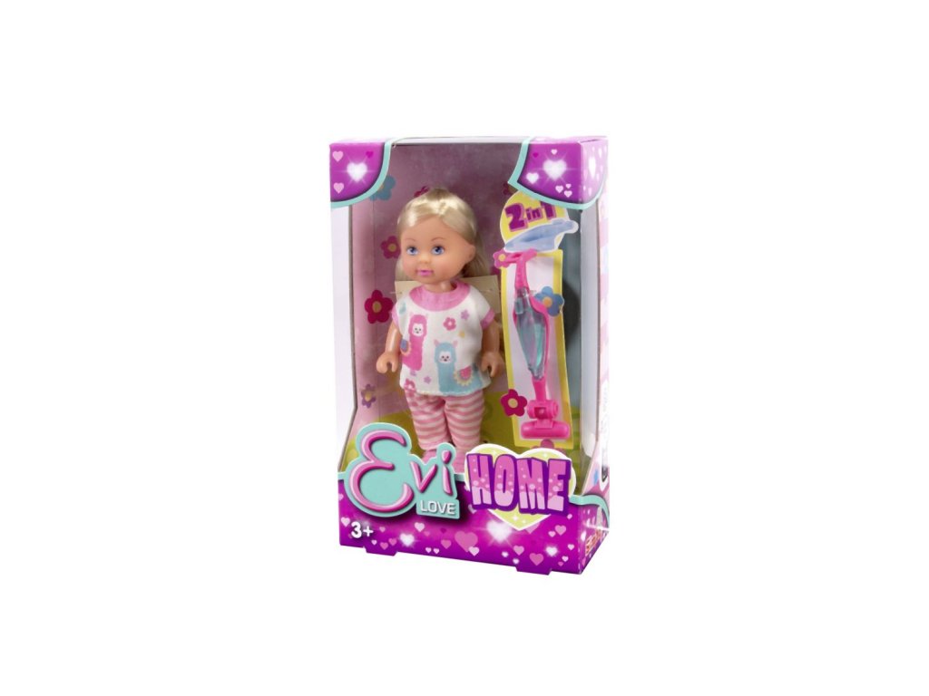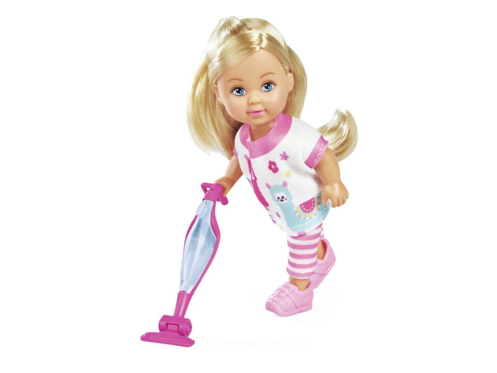 Panenka Evička v domácím oblečení s vysavačem 2v1 tyčový i ruční. Výška panenky 12 cm.Doplňkové parametry