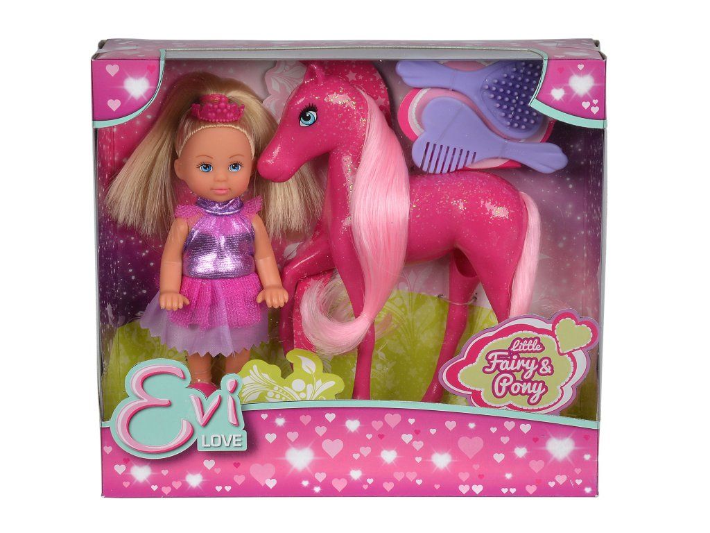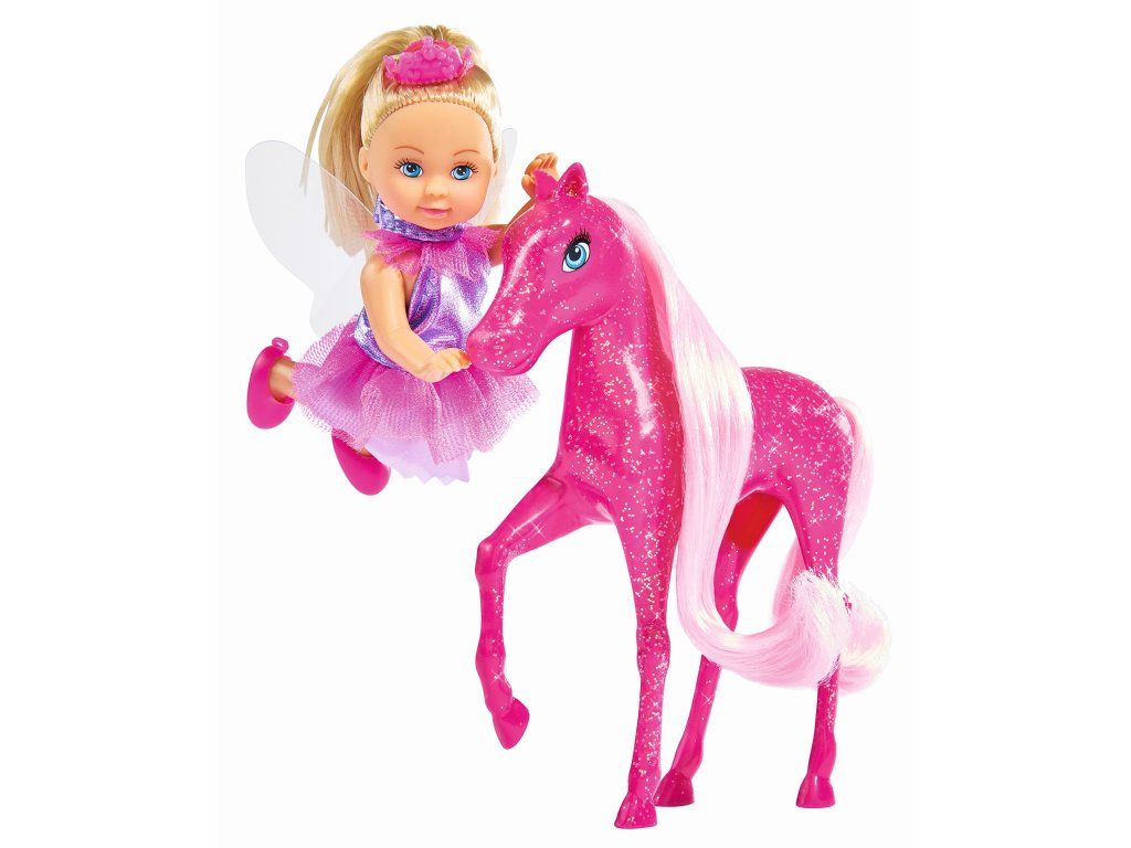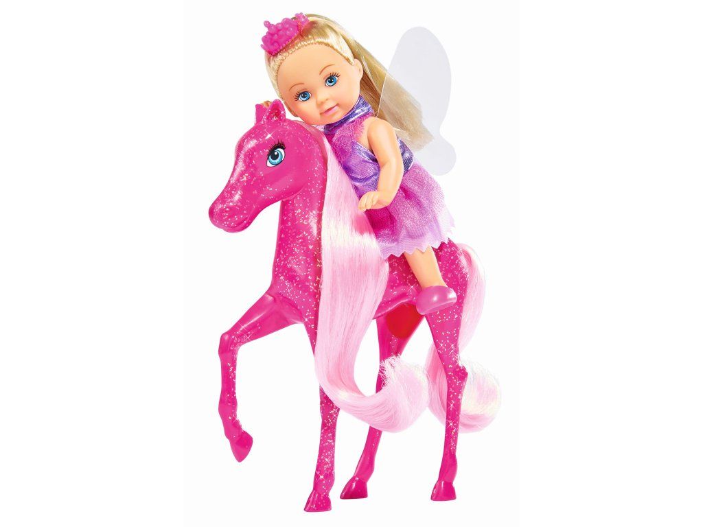 Panenka Evička jako princezna s kouzelným poníkem se třpytivou hřívou. Výška panenky 12 cm.Doplňkové parametry
