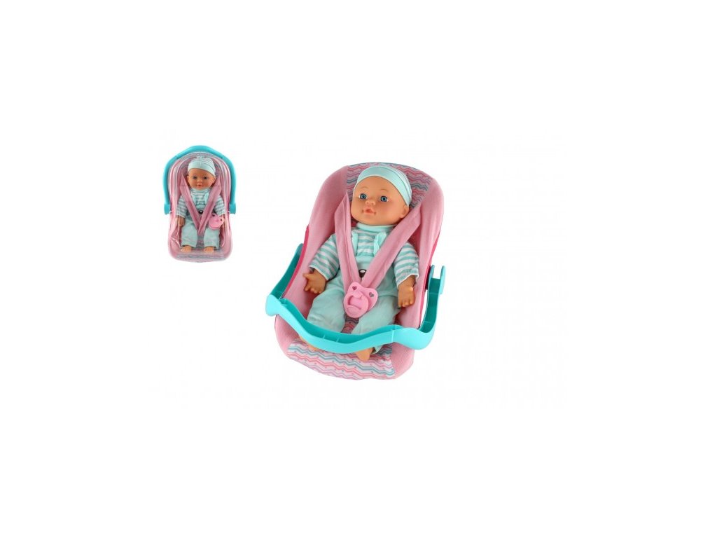 Panenka miminko plast/látka 30cm měkké tělo v nosítku/autosedačce s dudlíkem