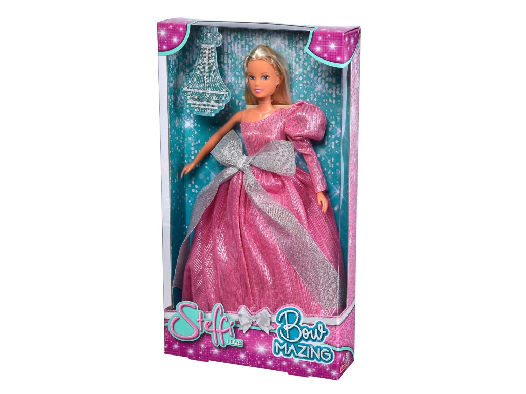 Panenka Steffi v nádherných večerních šatech s velkou mašlí. Výška panenky 29 cm.Doplňkové parametry
