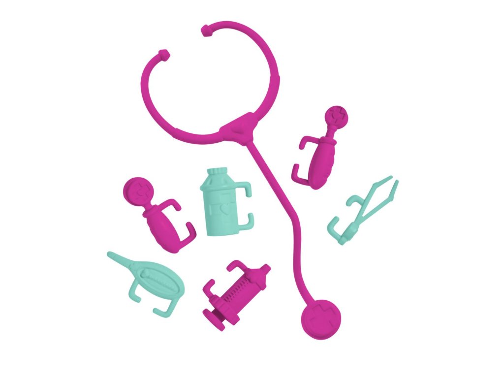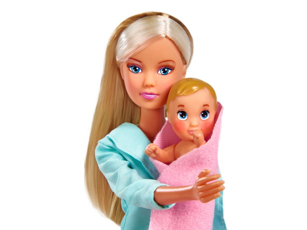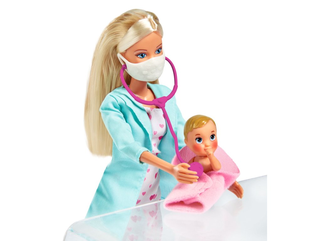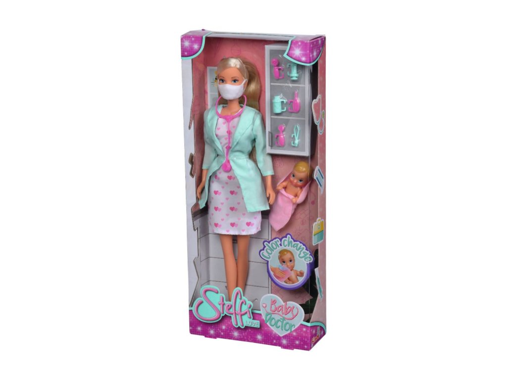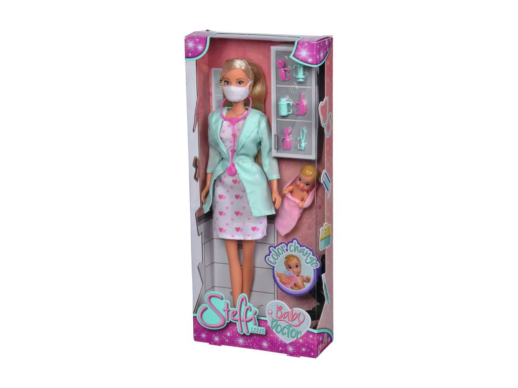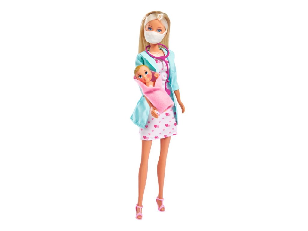 Panenka Steffi jako dětská lékařka se zdravotnickou obličejovou maskou a spoustou doplňků. Součástí miminko, kterému se při teplotě nad 31°C mění zbarvení tváří. Velikost panenky 29 cm.Doplňkové parametry