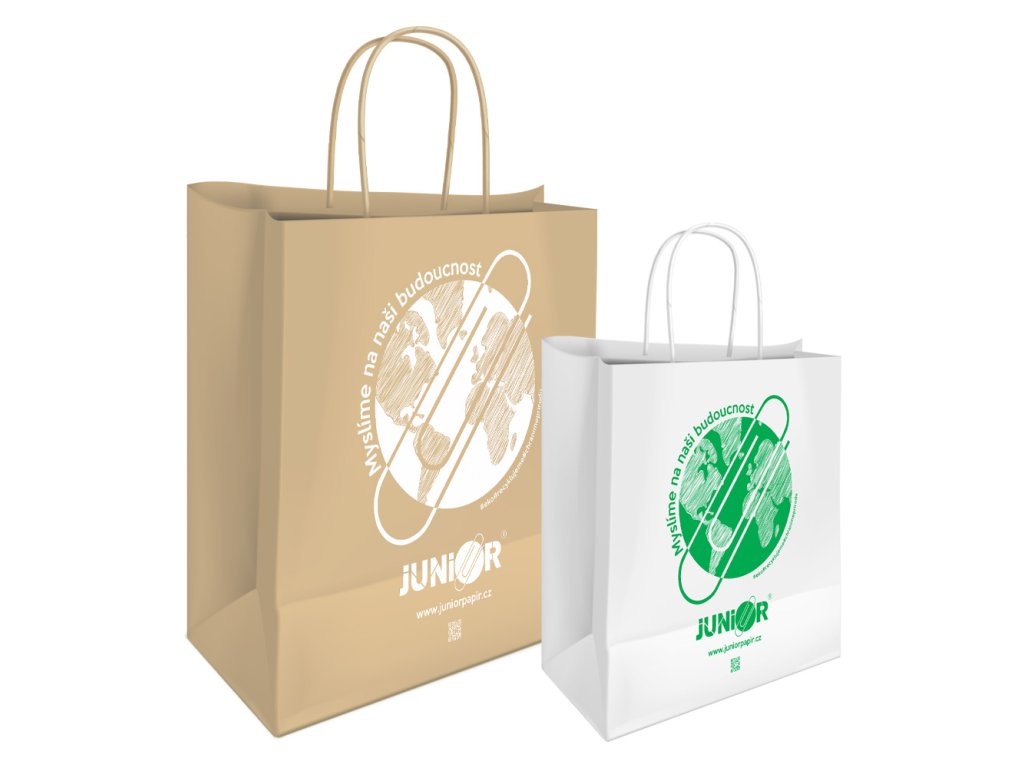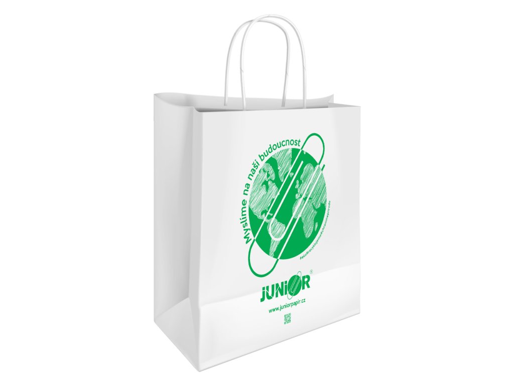 Papírová taška 22x10x26 cm, bílá s potiskem JUNIOR