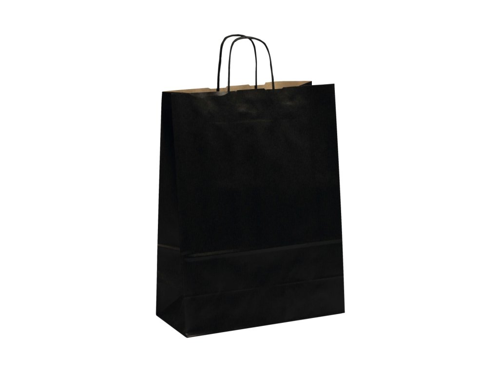 Papírová taška černá 24x11x31 kroucené ucho vroubkovaný vzhled