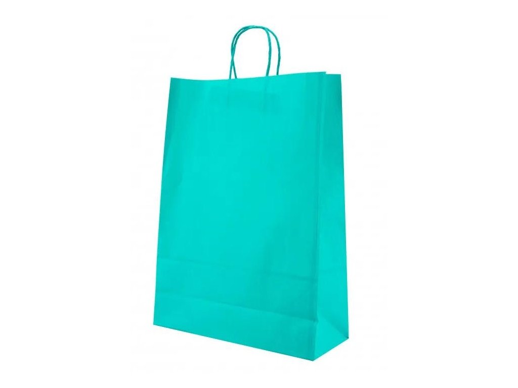 Papírová taška tyrkysová 31x12x42, kroucené ucho