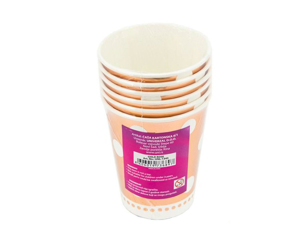 Papírové kelímky 260 ml Barva rose gold s bílými tečkami Sada 6 ks Krásná dekorace pro každou narozeninovou pártyDoplňkové parametry