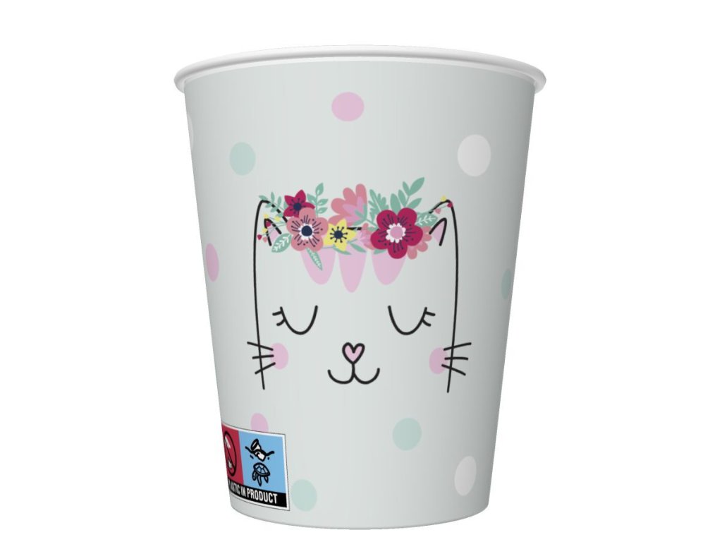 Papírový kelímek 0,25l Smiling Cat with Flowers Wreath