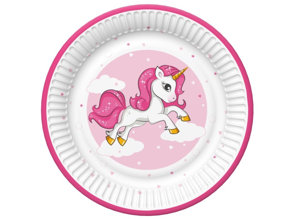 Papírové talíře Pink Heart Unicorn, průměr 18cm, balení obsahuje 8ks. Papírové talíře jsou ideálním řešením pro snadné stolování bez nepořádku.Doplňkové parametry
