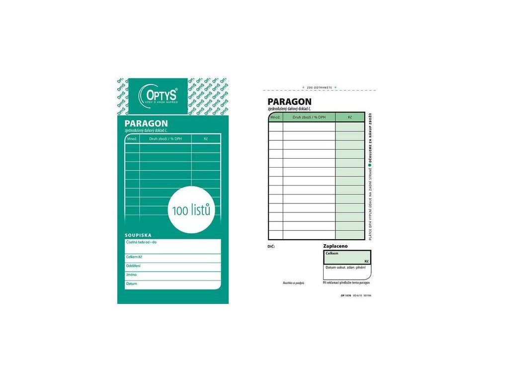 - Formát: 75 x 150 mm - Nepropisovací tiskopis - Nečíslovaný - Obsahuje 100 listu odtržitelných perforací, se základním děrovánímDoplňkové parametry