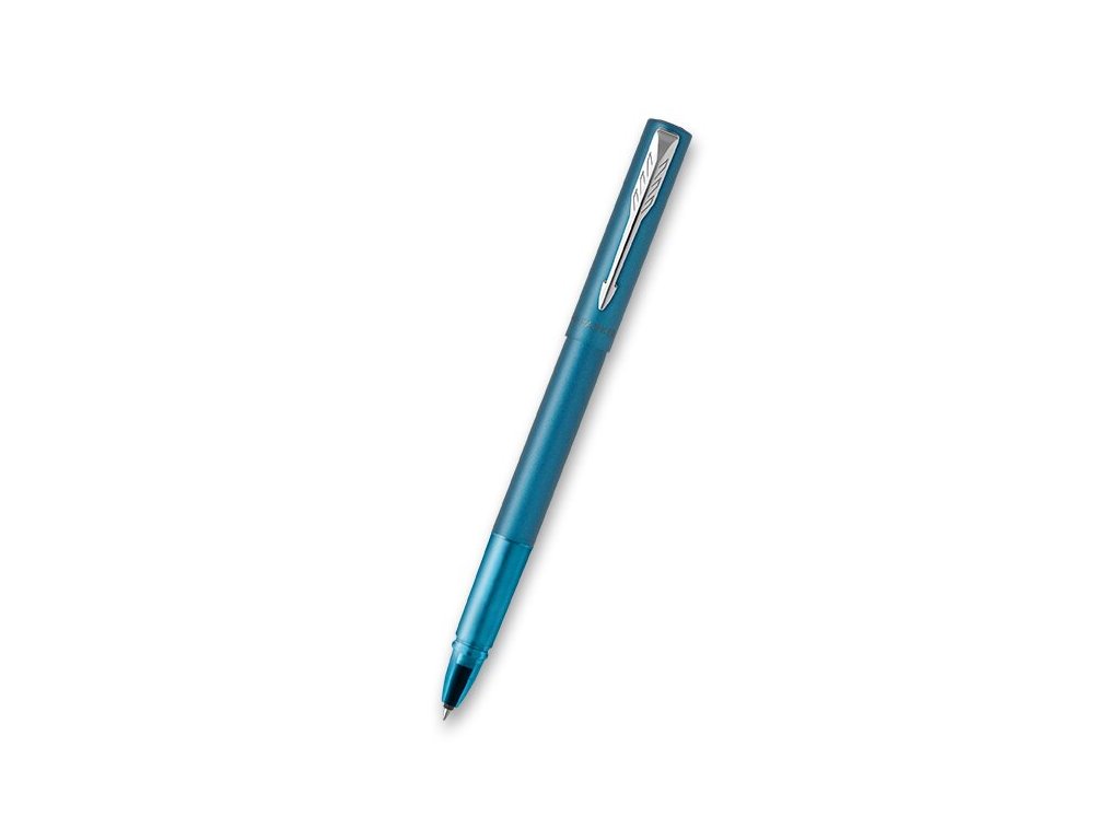 , Roller Parker Vector XL s mosazným tělem a víčkem se saténovým metalickým lakem v azurově zelené barvě a v kombinaci s chromovými doplňky. , Úchopová část pera je transparentní. , Roller: nasazovací víčko standardní náplň Quink pro rollery , Dodáváno v elegantním dárkovém balení s černou náplní.Doplňkové parametry
