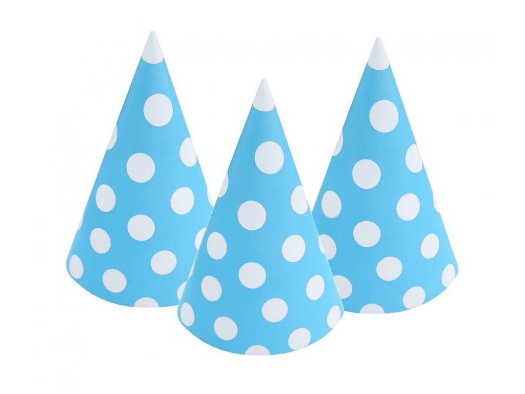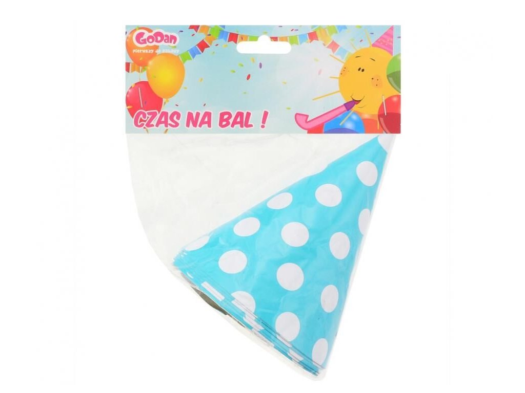 Párty čepička 6 ks modrá s bílýmí puntíky