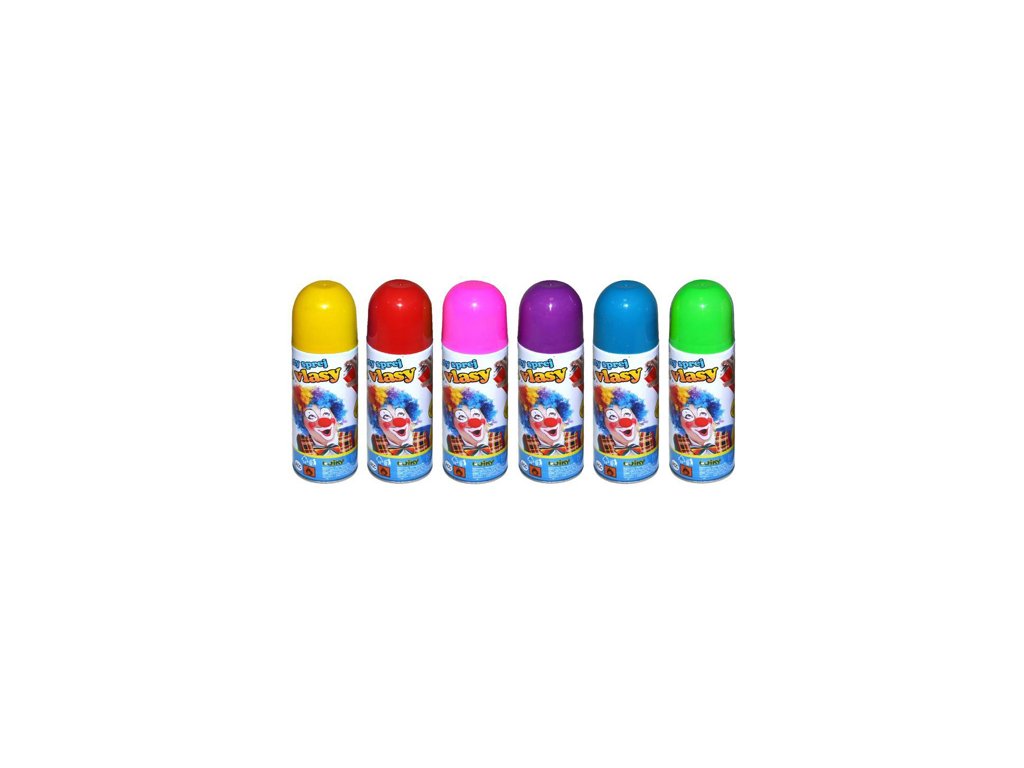 Party sprej na vlasy 140 ml v různých barvách. Oživte tak svou party nebo masku. Barvy: modrá, červená, zelená, žlutá, růžová a fialová.Doplňkové parametry